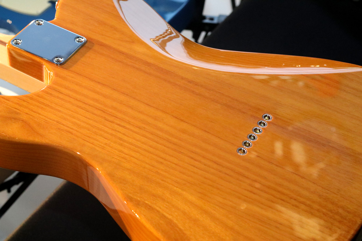ピックアップのポールピースの高さも変更。従来の各弦のポールピースの高さから、1弦を高くすることで、バランスの良いサウンドを実現