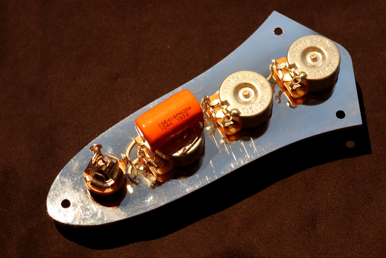 Jazzmasterのサドルは従来のスパイラルからMustang用のサドルに変更。イモネジの共振を防ぎます。