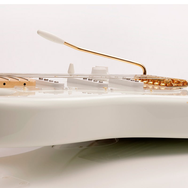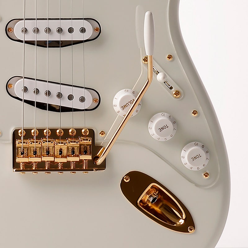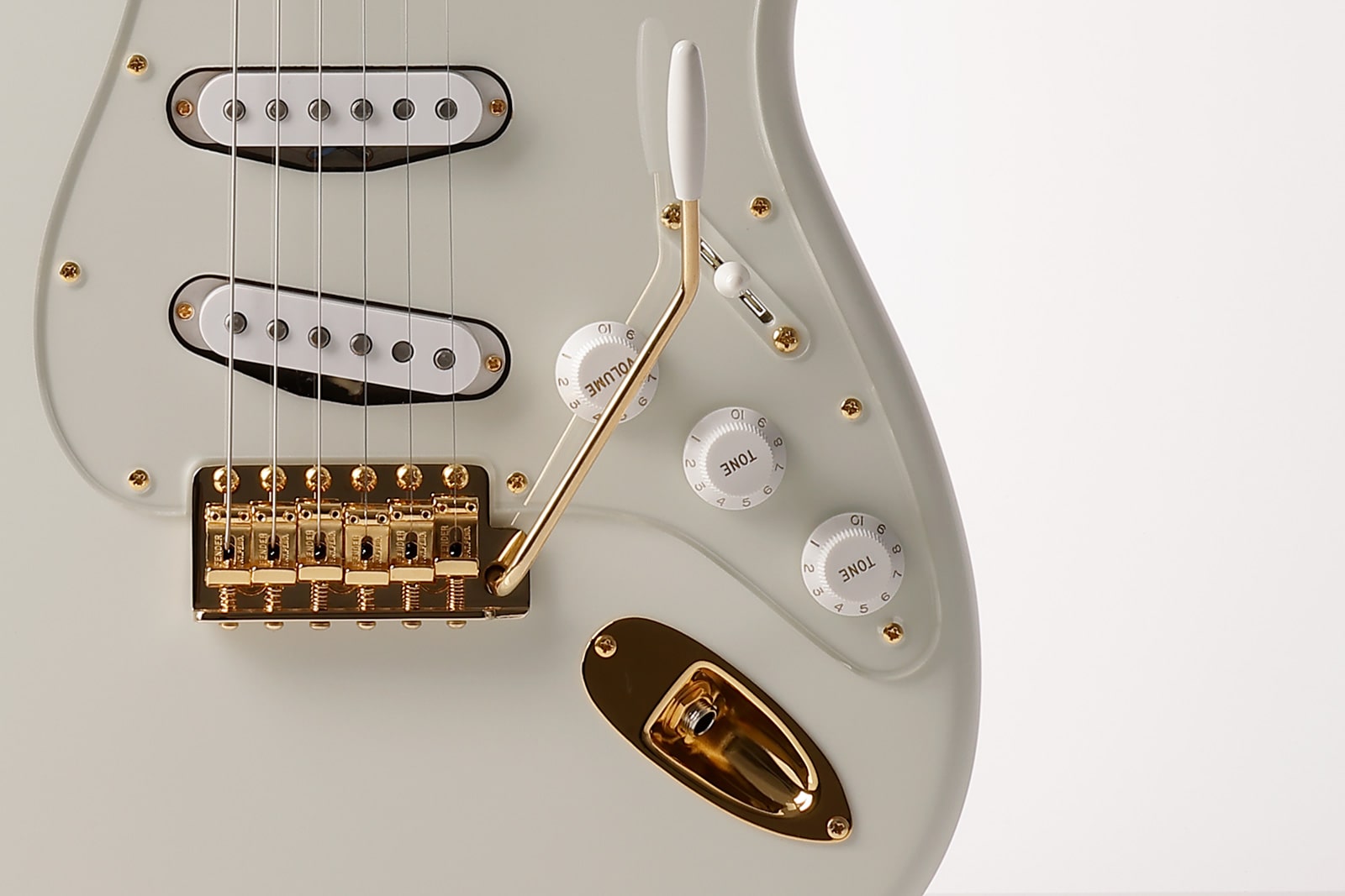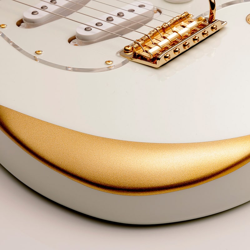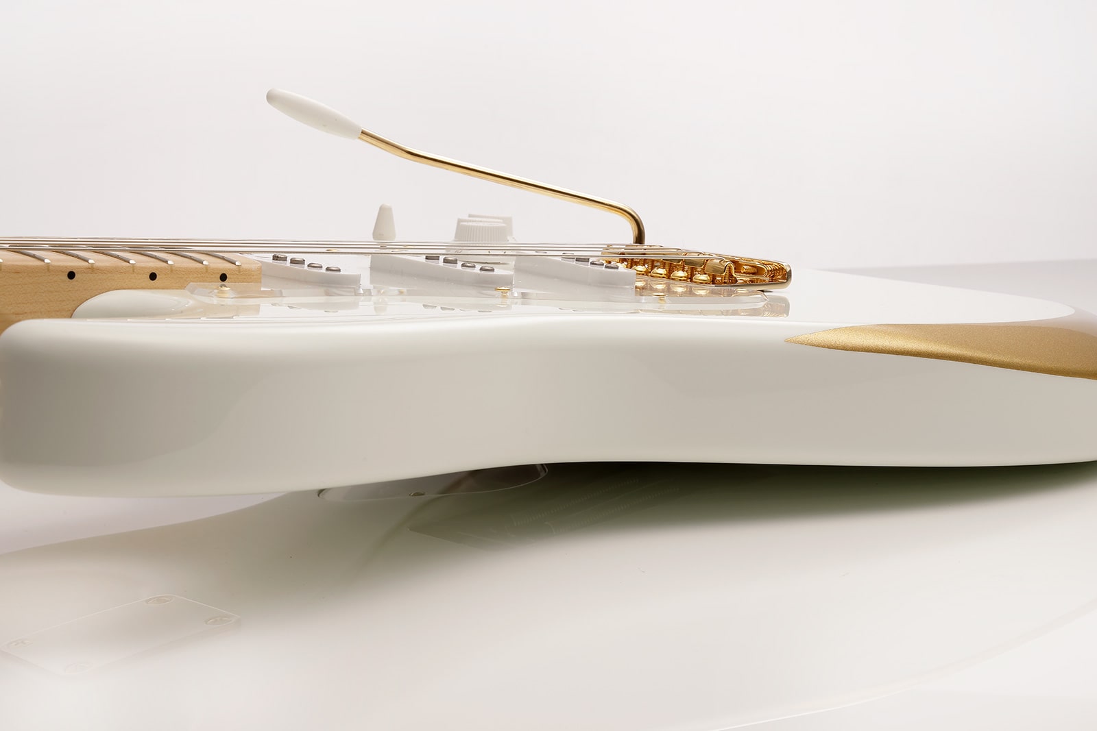 オリジナルホワイトのボディとマッチングヘッド、ゴールドのハードウェアの組み合わせは『金継ぎされた日本の陶器』というKen本人のイメージからデザインされています。
