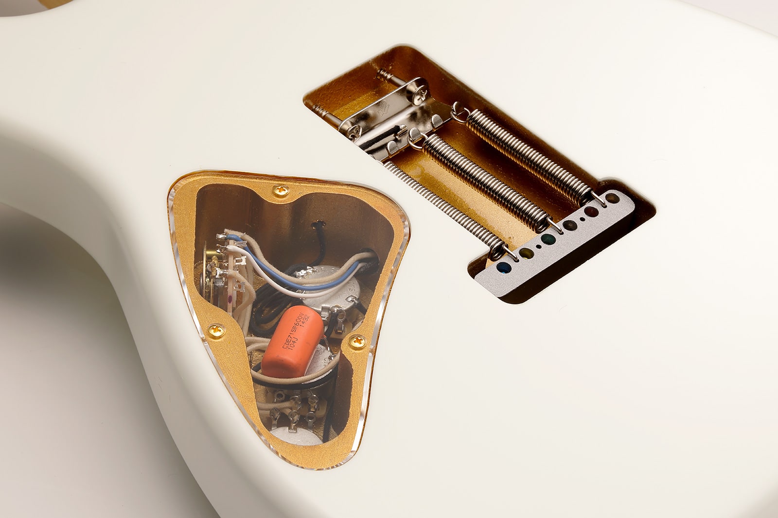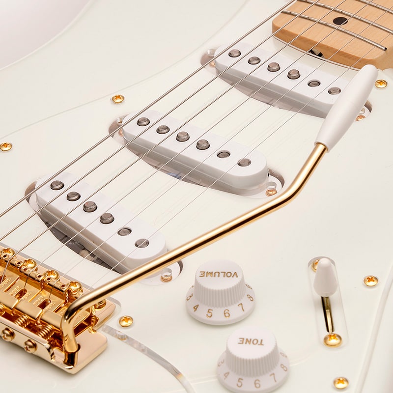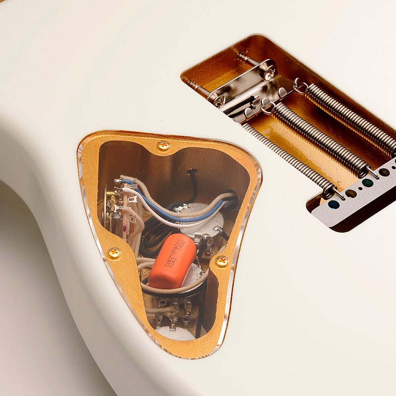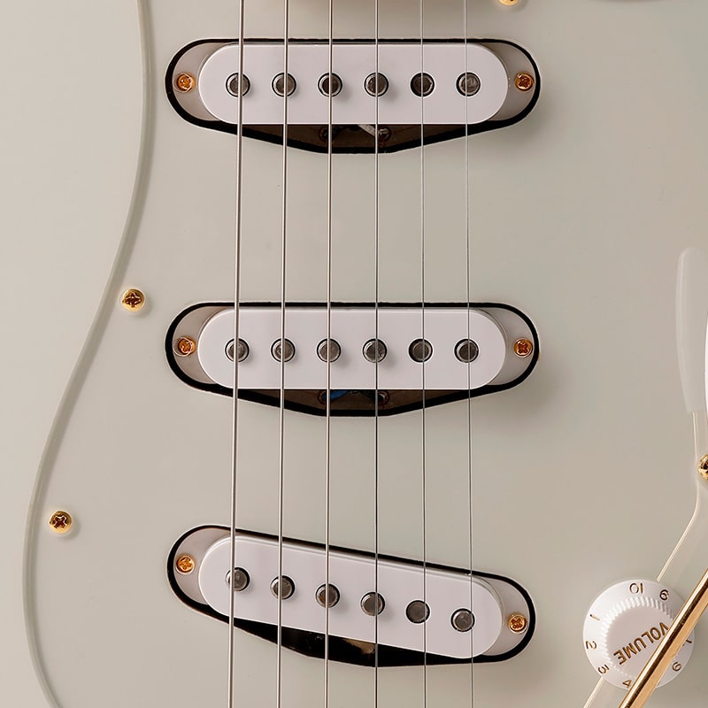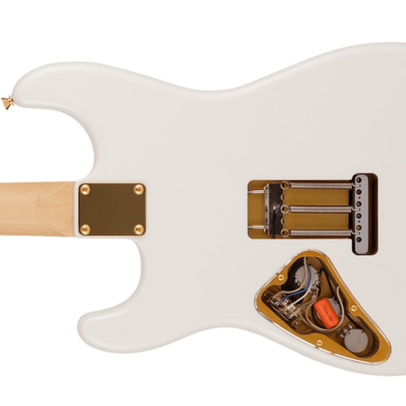 オリジナルホワイトのボディとマッチングヘッド、ゴールドのハードウェアの組み合わせは『金継ぎされた日本の陶器』というKen本人のイメージからデザインされています。