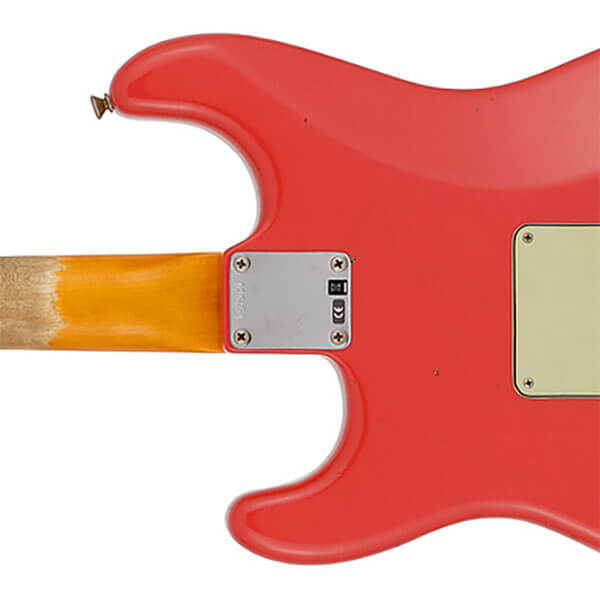 ボディカラーには、鈴木茂所有のオリジナル器同様デザートサンドを下地に60年代の代表的なフィエスタレッドをニトロセルロースラッカーで フィニッシュし、FENDER CUSTOM SHOPで最も人気の高いJOURNEYMANレリック加工で仕上げました。