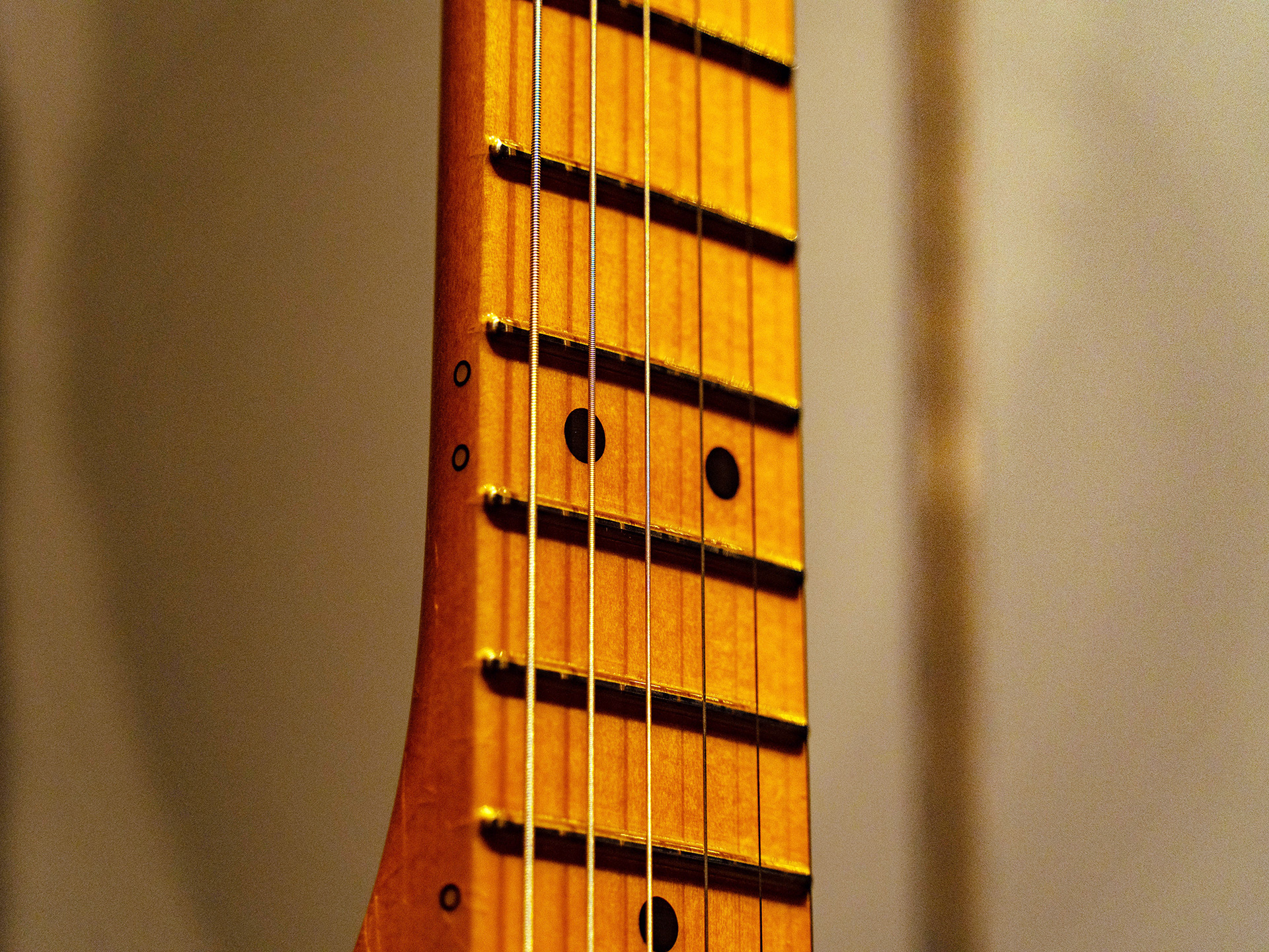 ウッドマテリアルも同様に厳選された材を採用、ネックはカスタムショップでの採用も多い柾目取りのメイプルを使用しています。