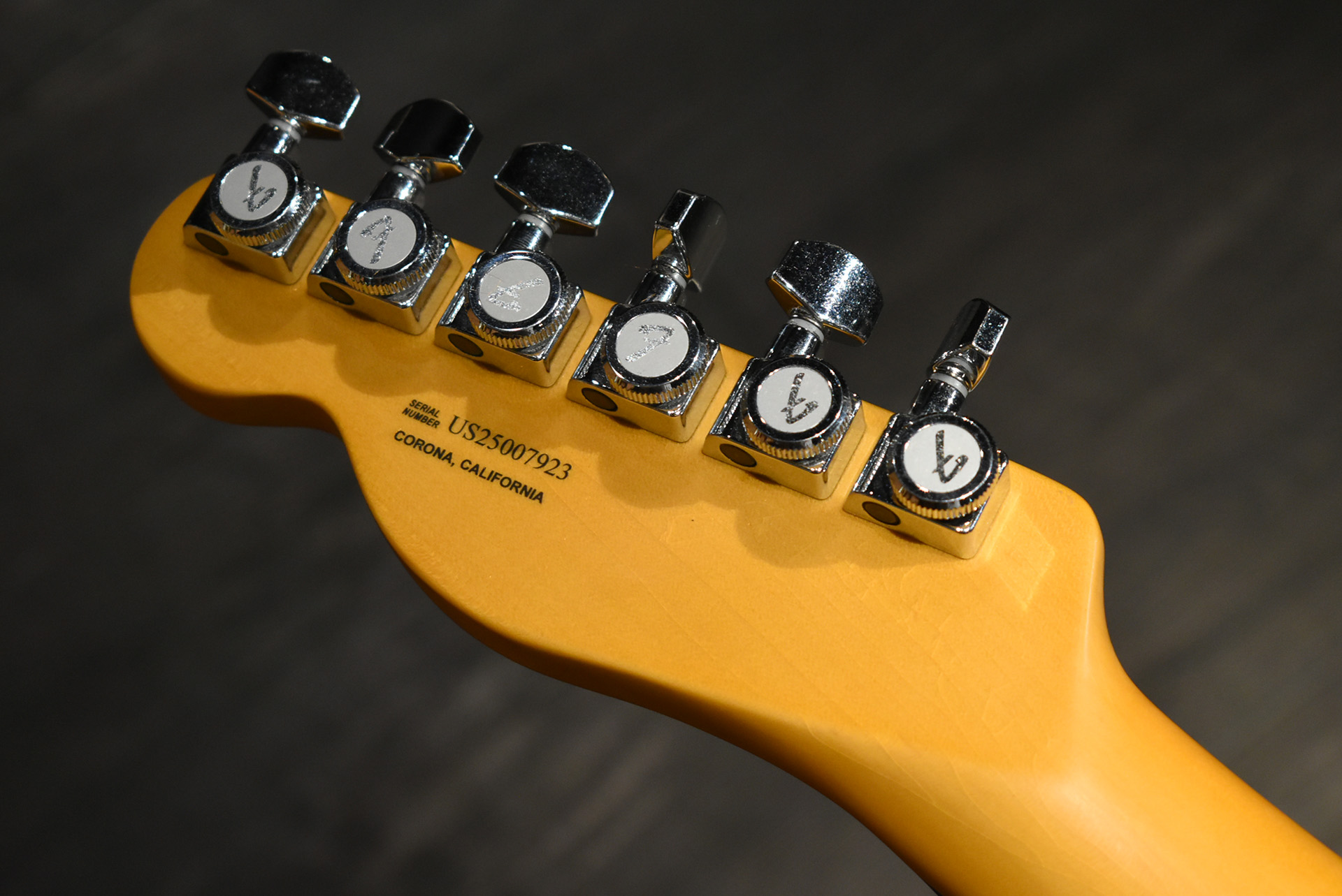各ハードウェアには、2点支持のトレモロ、6連サドルのテレキャスブリッジ、ロックペグといったハイエンドのトレードマークなパーツを採用。