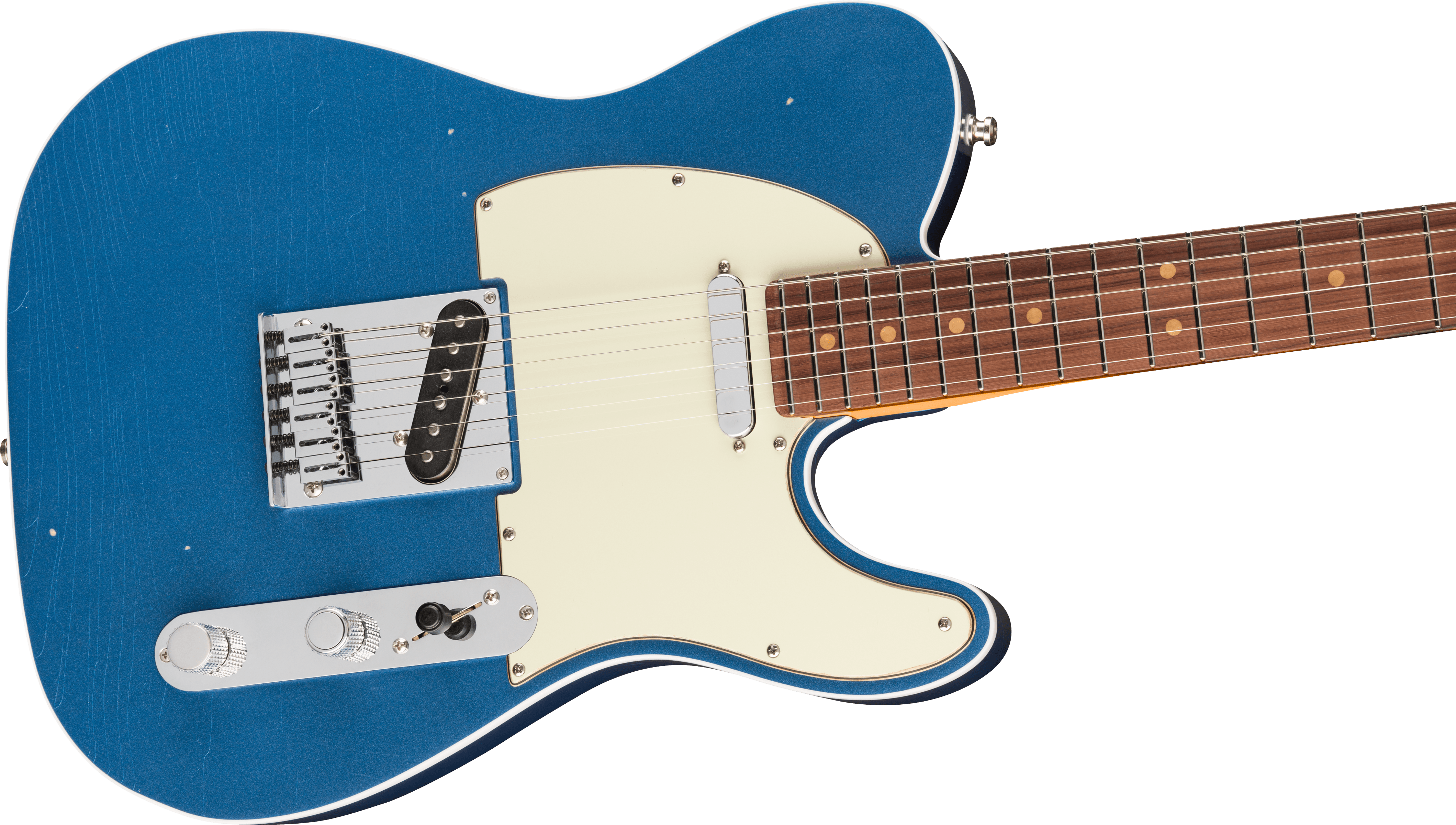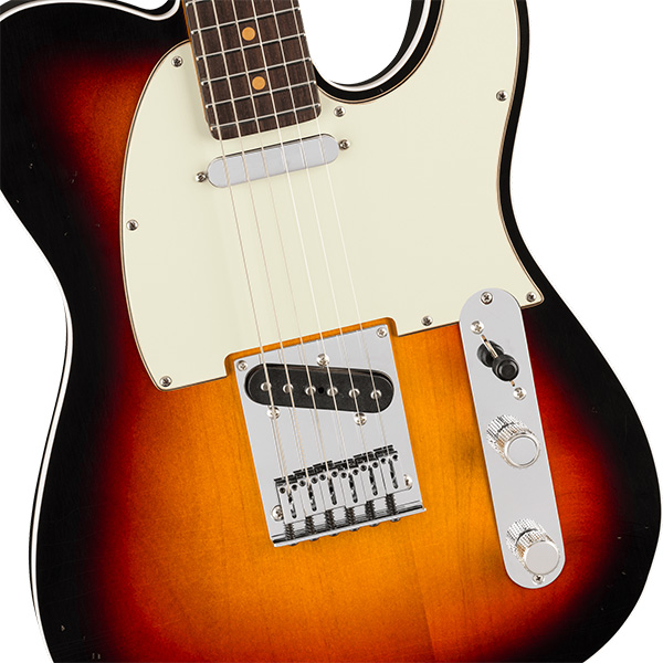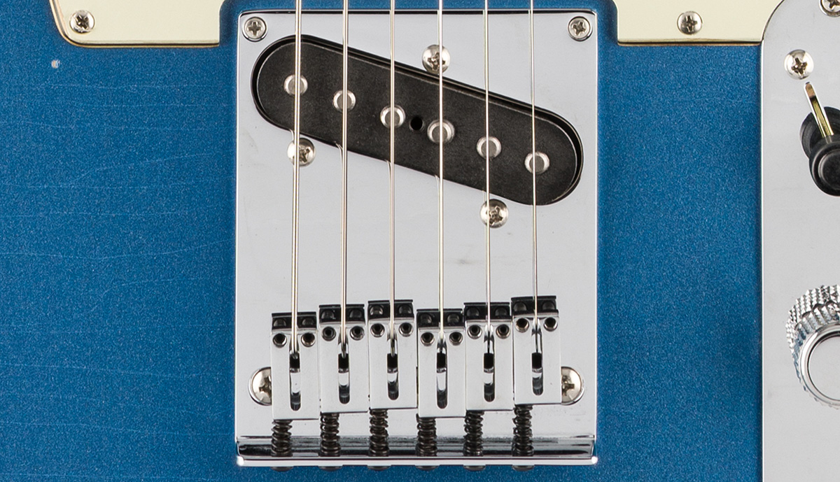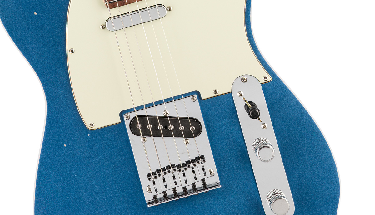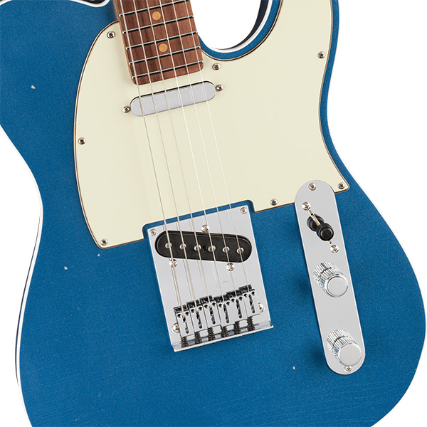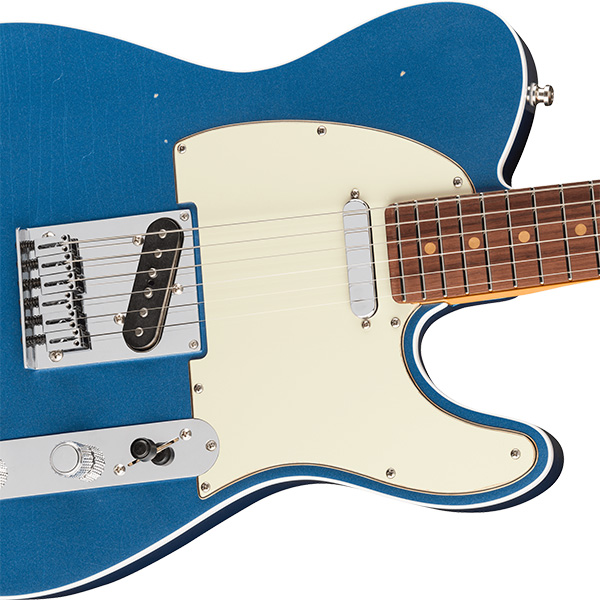 ピックアップにはPure Vintage '63 Tele®を搭載し、クリアで煌びやかなクリーントーンから、豊かで表現力あふれるリードトーンまで、クラシックなフェンダーサウンドを奏でます。ハードウェアには、6つのクロムフィニッシュブラスブロックサドル・スルーボディブリッジと、素早い弦交換と優れたチューニング安定性を誇るデラックスロッキングショートポストチューナーを装備し、高い演奏性を提供します。