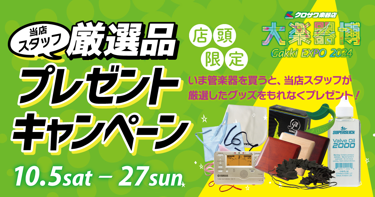 Gakki EXPO期間中に対象の管楽器をご購入いただいたお客様に、当店スタッフが厳選した消耗品やメンテナンスグッズをプレゼント!
