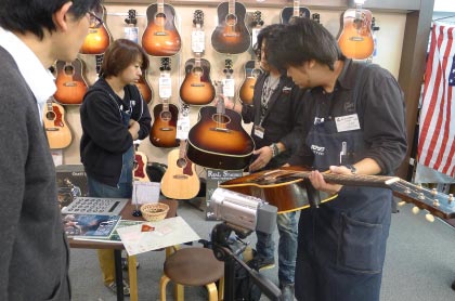 1959年製J-45を持ち込み、当社Gibsonアコースティックチームが集合し細部まで比較検証いたしました。