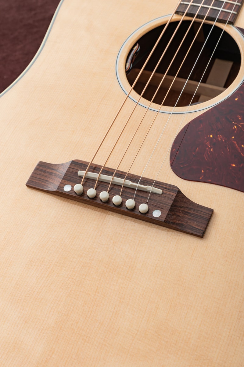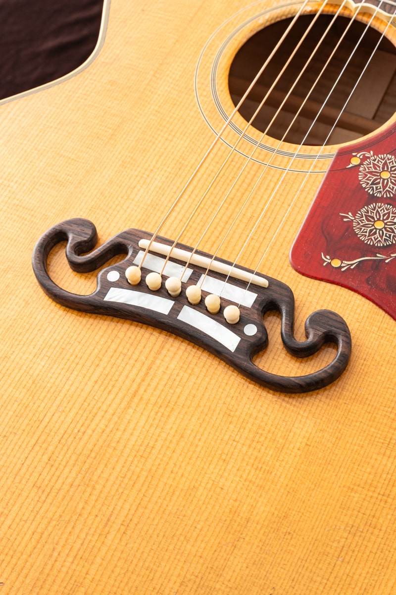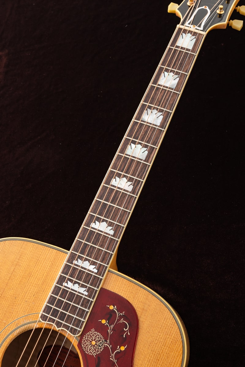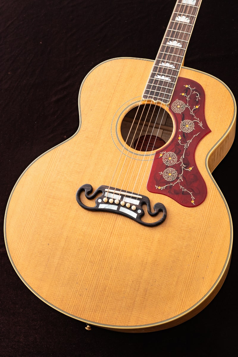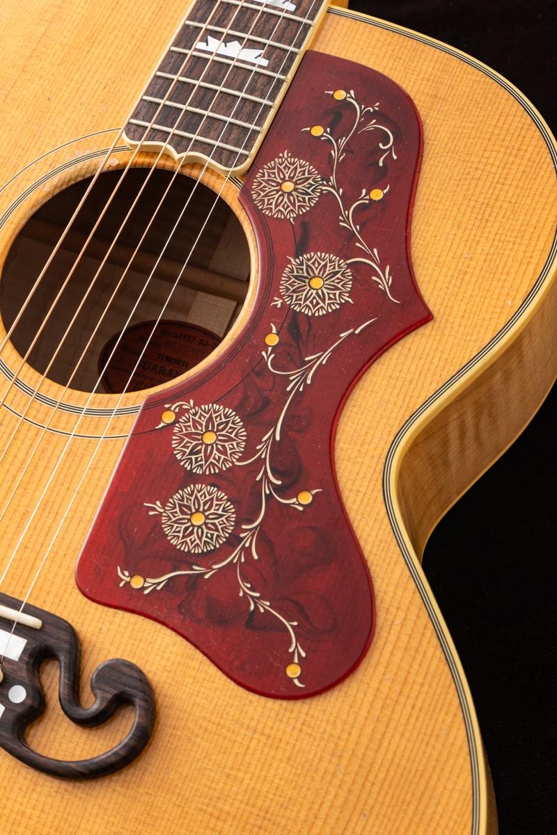 当社Gibson Acoustic担当スタッフがGibson社現地にてハンドセレクトしたサウンド重視の一本。しかもお値段据え置き!通常個体と比較するとよりブライトに軽いタッチでもしっかり音が飛び、もちろん力強く押し出してやれば尚一層らしいサウンドを紡ぎ出す特別な一本が選ばれました。その名が示す通り、1957 SJ-200ライトエイジドはマーフィー・ラボの熟練ルシアーによるライトエイジング加工が特徴的です。マーフィー・ラボのライトエイジド仕上げ処理と、軽くエイジング加工を施したハードウェアが相まって、数十年にわたるプレイヤーの使用による軽微な使用痕を再現。ギブソン黄金期のヴィンテージギターが持つ独特の個性、雰囲気、フィーリングを再現しています。50年代スタイルのリフトン™ハードシェルケースに収納され、ギブソン・カスタムとマーフィー・ラボだけが提供できる、本物のヴィンテージ演奏体験と所有体験を提供します。