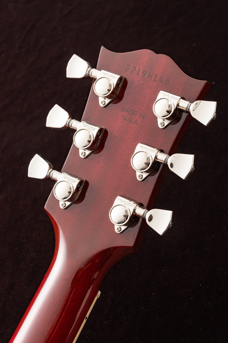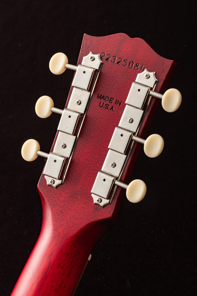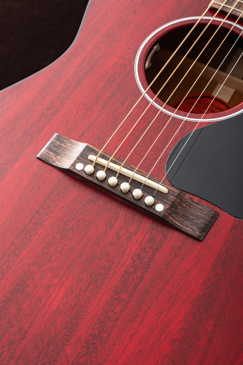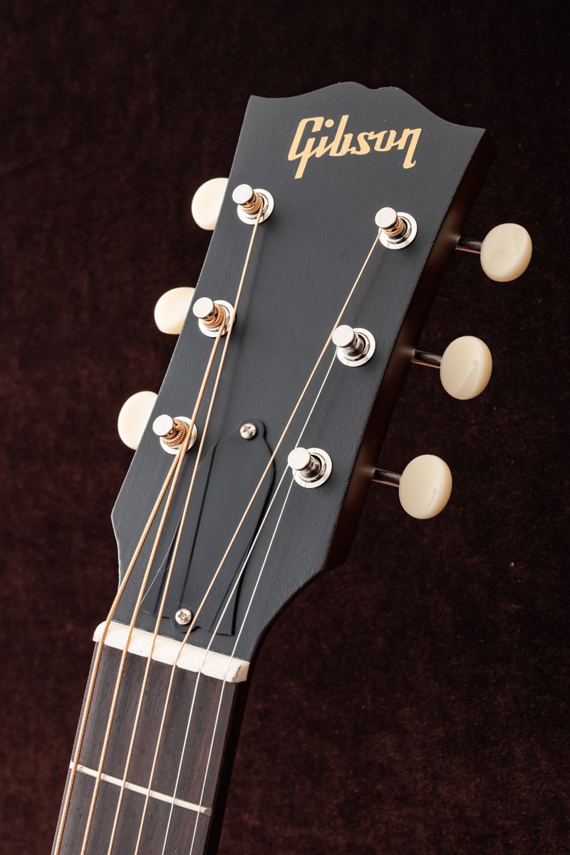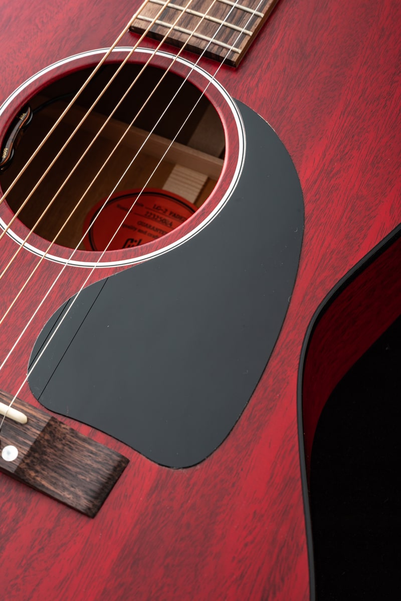 1942年、バナーロゴをヘッドストック上に冠していた“バナー期”に初めて登場し、その小ぶりなボディからは想像できない豊かなサウンドで瞬く間に愛されるモデルとなったGibson LG-2。今回ハンドピックしたのは、バックとサイド、そしてサウンドボードに至るまで、ソリッド・マホガニーを使用したスモールギブソンのチェリーレッドカラー。オール・マホガニー・ボディの本モデルは、同サイズのスプルース・トップを持つギターと比べて、より温かく丸みのあるサウンドを生み出し、フォーク、ブルース、フィンガースタイルに最適です。また、その小ぶりなボディサイズは、大きなボディのアコースティック・ギターと比べて抱えやすい点も魅力です。さらに、現代のパフォーマーやレコーディング・ギタリストのニーズに応えるため、L.R. Baggs VTCアンダーサドル・トランスデューサーと内蔵プリアンプが搭載されています。