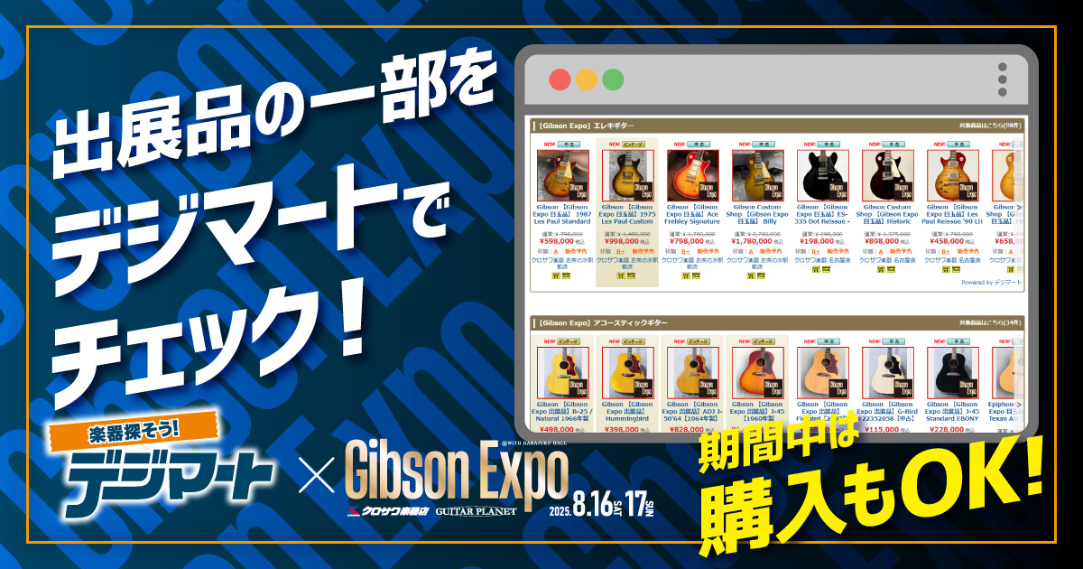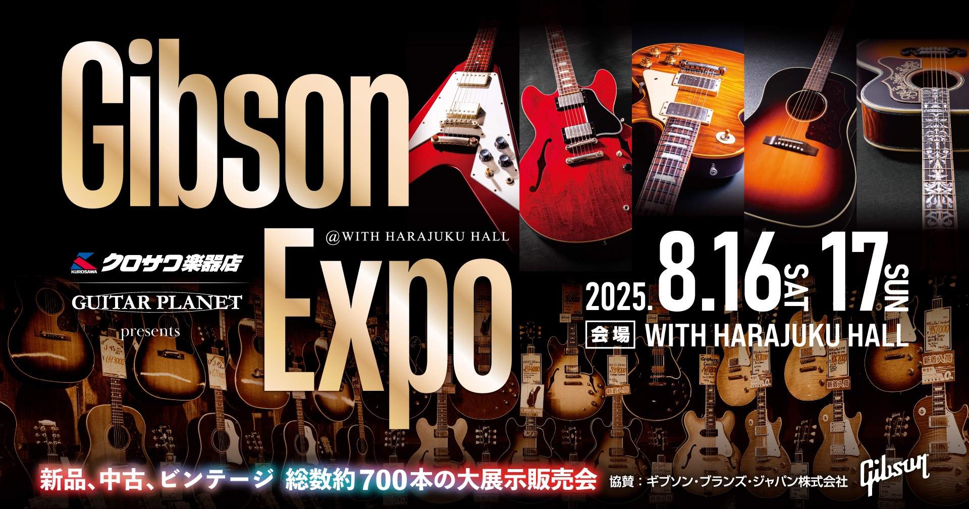ギブソンの今と過去が原宿に勢揃い! ギブソンだけで約700本。最新モデルやオーダーモデル、中古からビンテージまであらゆるギブソンが一堂に会する展示販売会「Gibson Expo」がこの夏開催決定。いまだかつてない圧倒的ギブソン体験をお届けします。 豪華ゲストを迎えた特別なイベントや、アーティスト機材の特別展示などの贅沢な企画も。どっぷりロマンに浸る2日間!