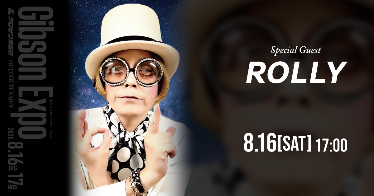 スペシャルゲストに「お茶の間のロックスター」ROLLY さんが急遽決定!ギブソン愛を語りつくすトークと会場内に展示してあるエレキギターのサウンドチェックを特設ステージ上で繰り広げます。また展示品のエレキギターの中から本人が「コレは!」と感じた「ROLLY おすすめの一本」を特別に選定。