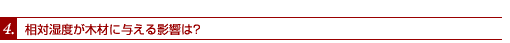 | 全ての有機物や多孔性物質は、温度と湿度の両面から取り巻く空気を均一にしようとします。もしあなたが何かを乾燥した環境に置けば、それは乾燥するでしょう。木材も同様に取り巻く環境に同化します。環境が乾燥していれば、木材も乾燥してきます。逆に湿気があれば木材も湿ってくるのです。木材が水分を含めば膨張します。木材が水分を失えば逆に縮みます。これは木材の持つ物理的特徴です。家の中のドアが湿った時期には開くのが固いし、乾燥した時期には容易に開く、という現象は最も良い例でしょう。 |