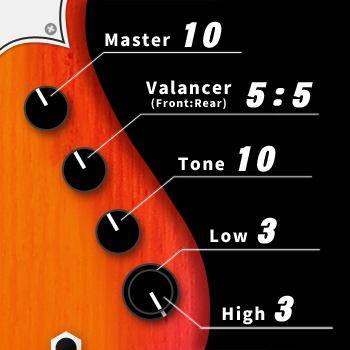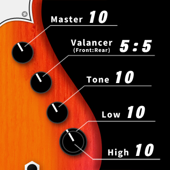 スタックタイプの2BandEQは、0~10に増幅させるタイプで、素直でクリアなサウンドから、アッシュ/メイプル材独自の攻撃的なサウンドまで幅広くカバーできます。