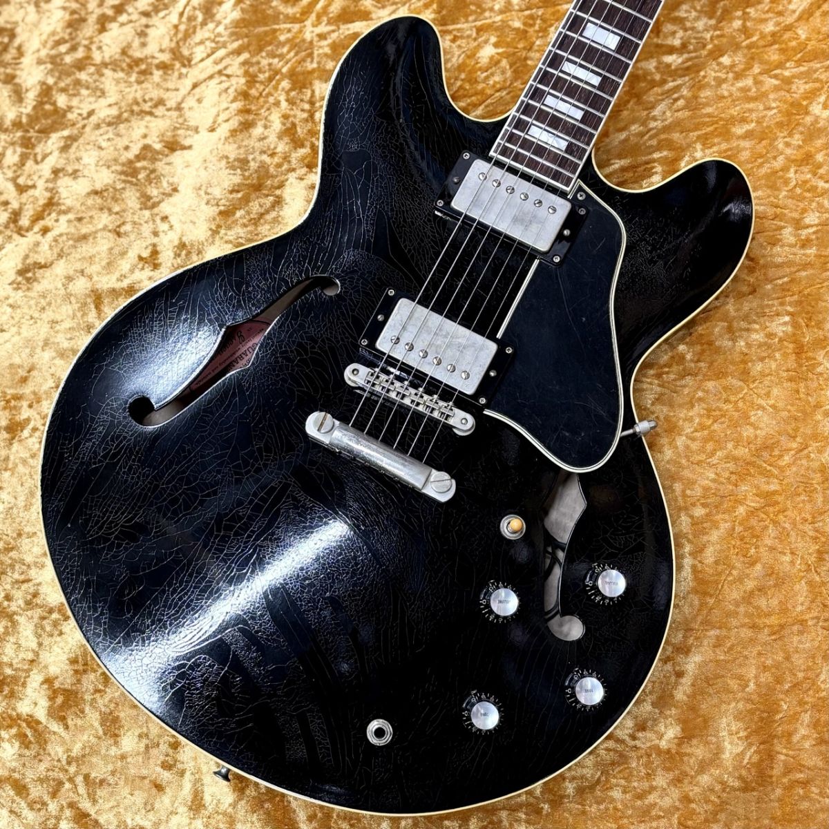 ギブソン最高グレード杢であるR-TOPメイプルを贅沢に使用。インテリアとして飾っても映えるような落ち着きのある暗いアイスティーカラーにマーフィーラボによるエイジド加工が相まって唯一無二の雰囲気を醸し出しております。ピックアップにはカバーの取り付られていないアルニコ4カスタムバッカーを2基搭載。通常よりも高出力なカスタムバッカーはマーフィーラボ特有のバリっとしたヴィンテージサウンドと相性抜群です。