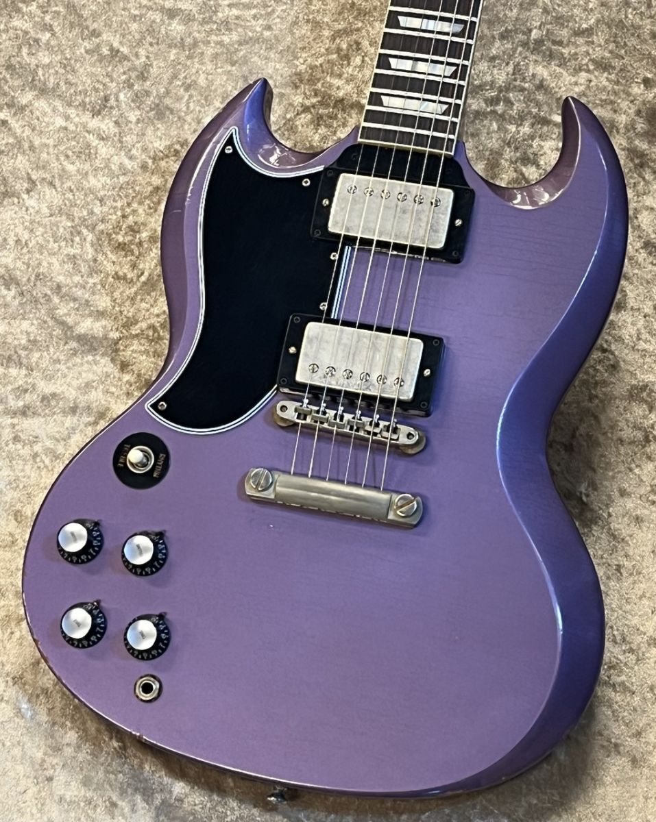 渋谷店鈴木が米国ギブソン社にて直接選定した他では手に入らない極上の一本!カラーは"Root Beer Sparkle"。シースルーではなく茶色の中にメタリックとラメが散りばめられており、スポットライトを浴びればラメが輝くステージ映えする一本です!バックはシックなDarkカラーで染色され、絶妙な透け感が贅沢にも一枚板から切り出された良質なマホガニー材を上品に引き立てています。またバックカラーに合わせてヘッドバックには金字のシリアルスタンプが施されています。またマーフィラボによる気迫のHeavy Agedと深みのある輝きを放つカスタムカラーとのマッチングも良く渋味のある1本となっています。