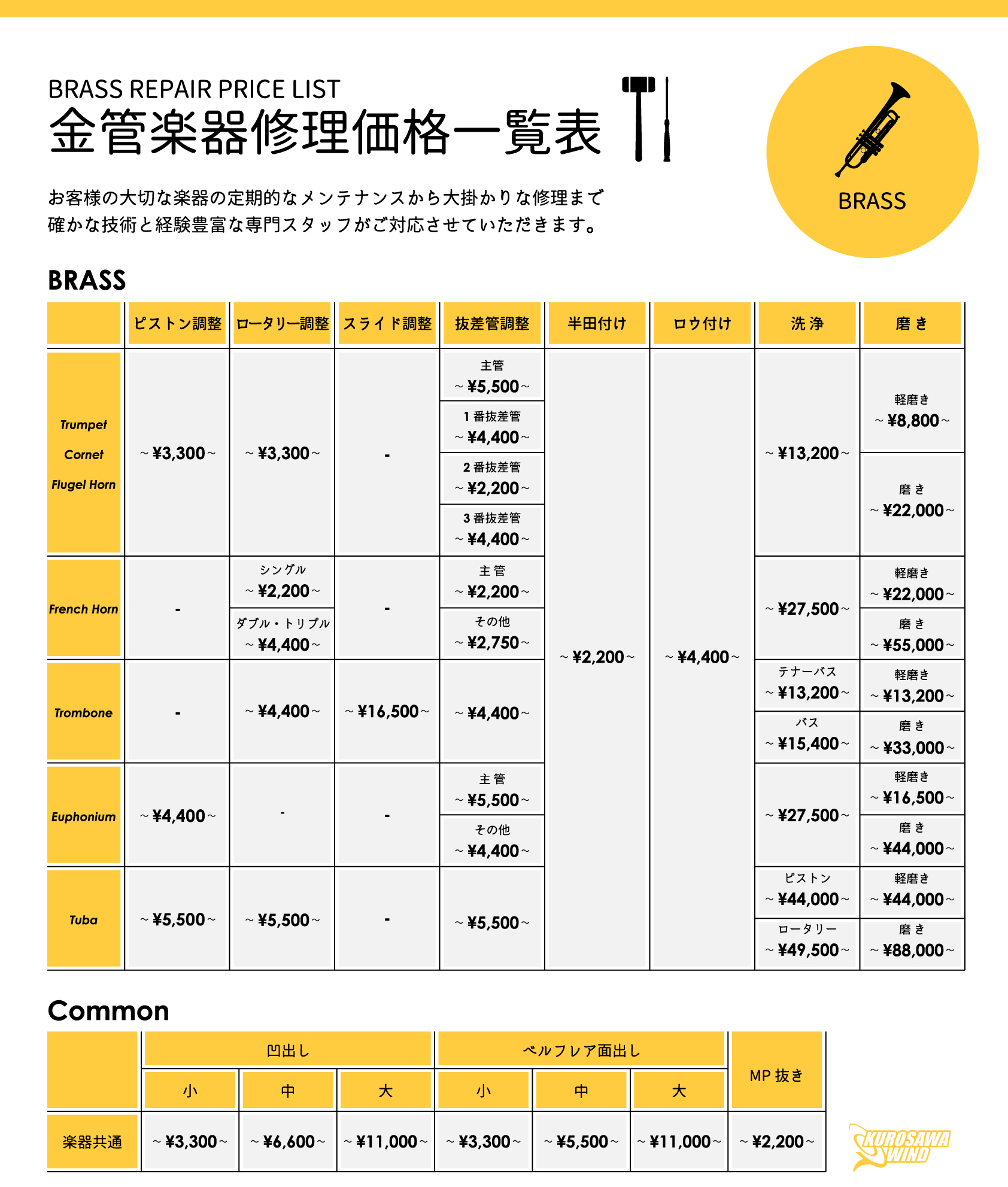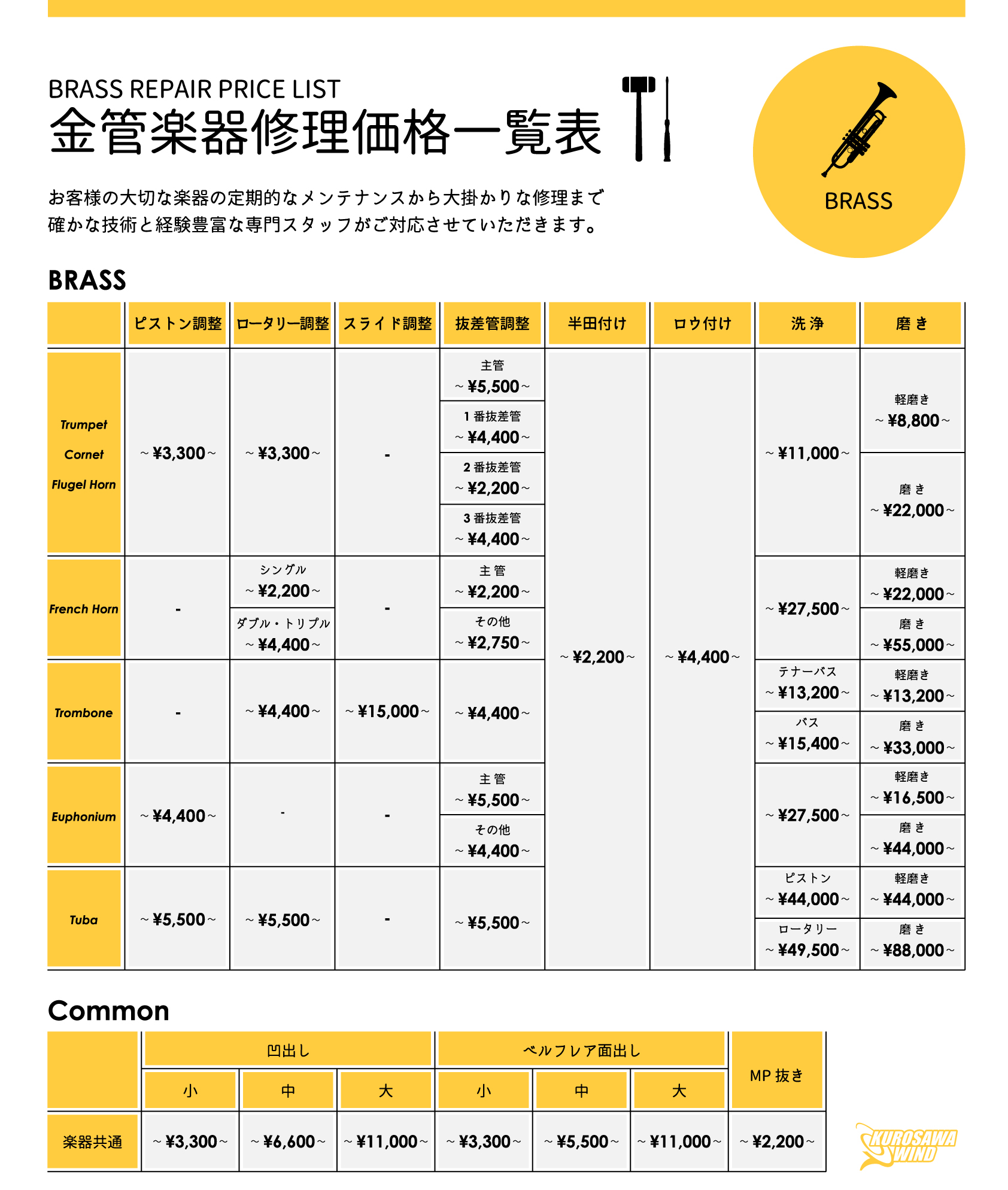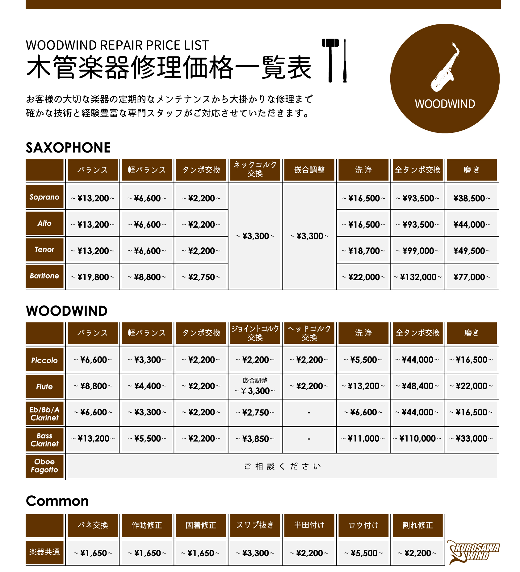 〒169-0073 東京都新宿区百人町1-10-8 クロサワ楽器日本総本店 3F 03-3363-9630 wind@kurosawagakki.com |