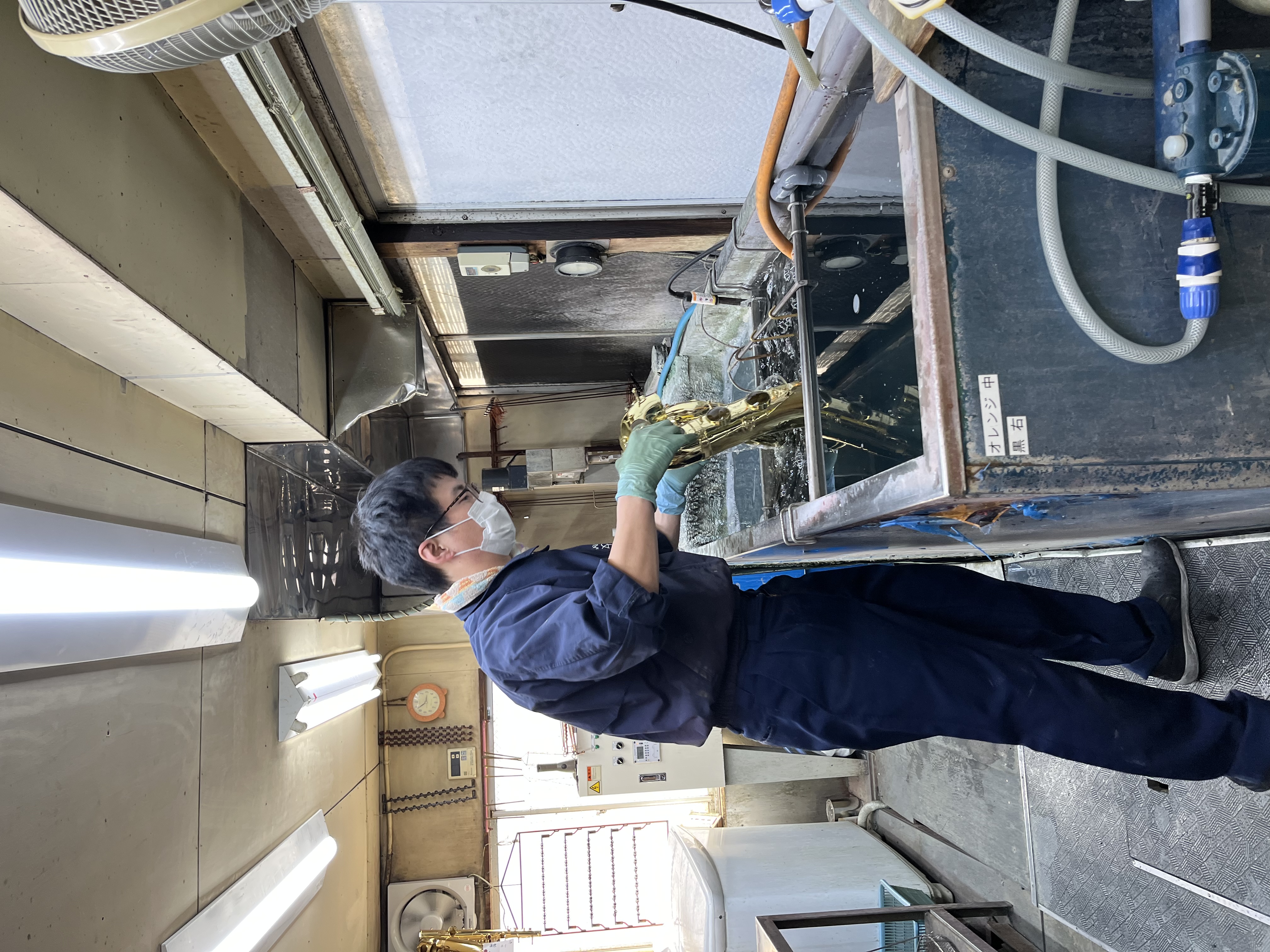 | もはや彫ったとは思えない美しさ、この楽器は銀製のA-WO37という最高峰モデル 。 | バフ掛けが完了した表面の油や汚れを洗浄機で落として、塗装の準備を進めます 。 |