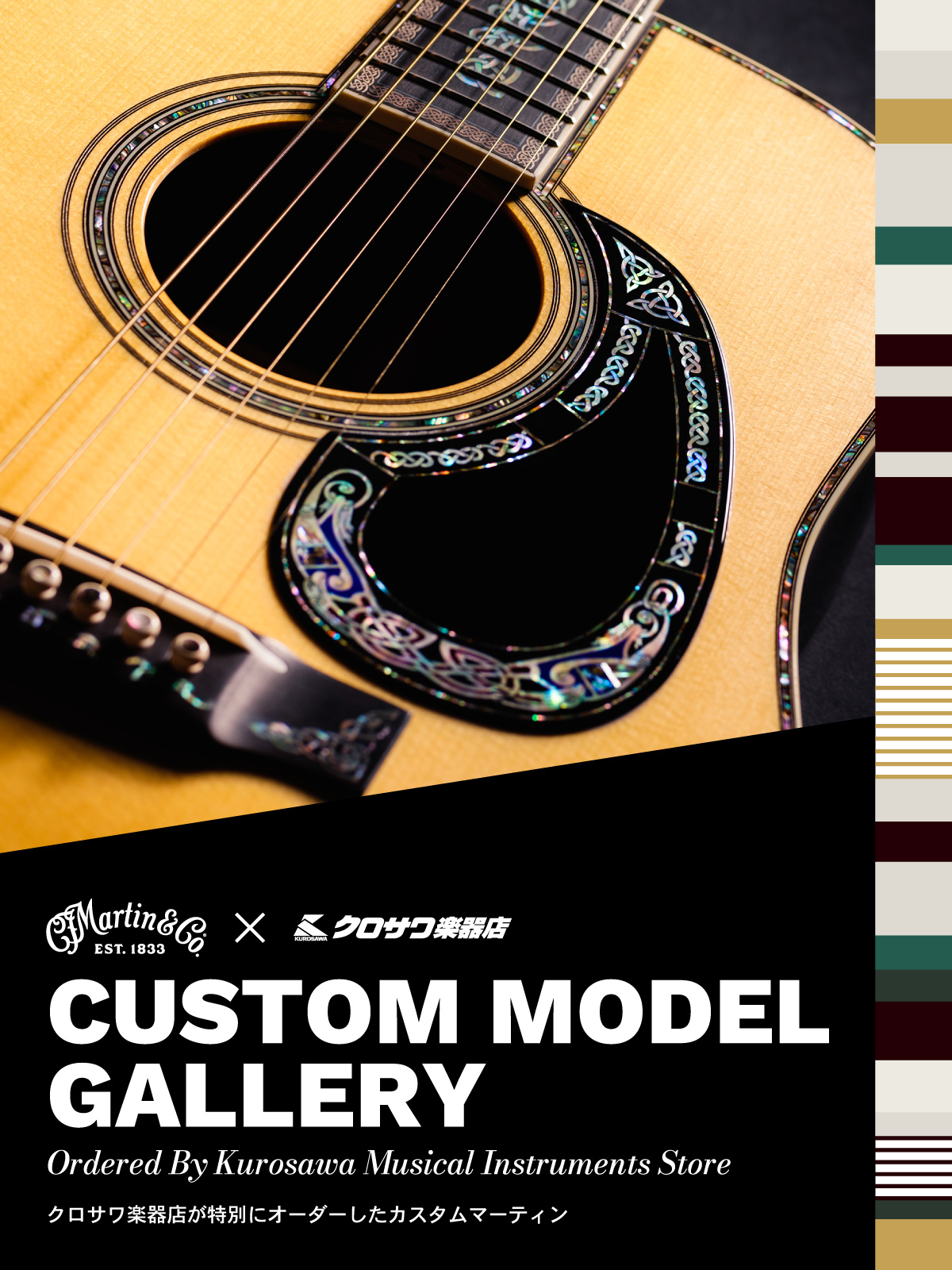 ここに掲載しているマーティンギターは、クロサワ楽器各店のマーティンギター担当スタッフがこれまで店舗で培ってきた経験と夢とそれぞれのこだわりを詰め込んで、カスタムショップにオーダーしたカスタムモデルになります。過去に販売したものから現在販売中のものまで可能な限り掲載してまいりますので、ぜひご覧ください。