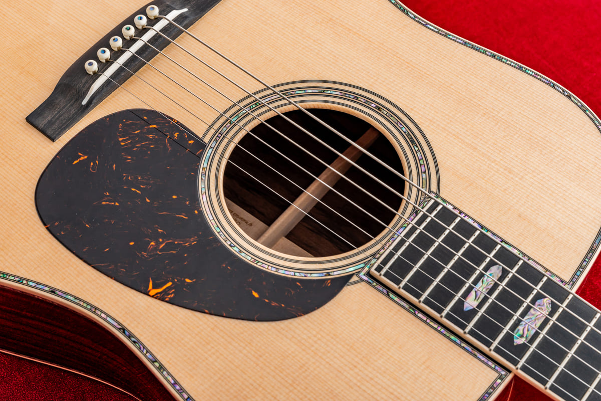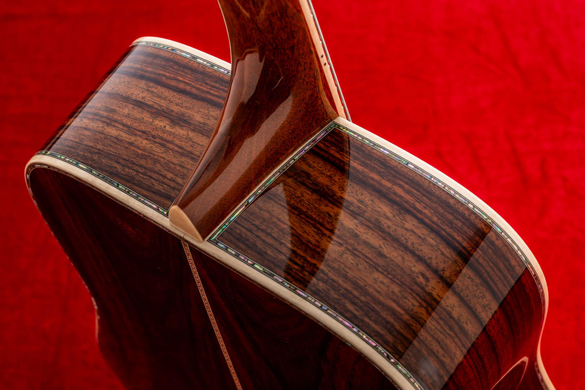 2025年冬のNAMM SHOWにて厳選した木材選定を行い、仕様に拘った当社オリジナルオーダーモデル。最も注目して頂きたい点は、サイド・バックに使用されているワイルドグレインイーストインディアンローズウッド。Martin 所有のローズウッド材の中でも杢が強くでた板目のローズウッドを中心に選定をしています。