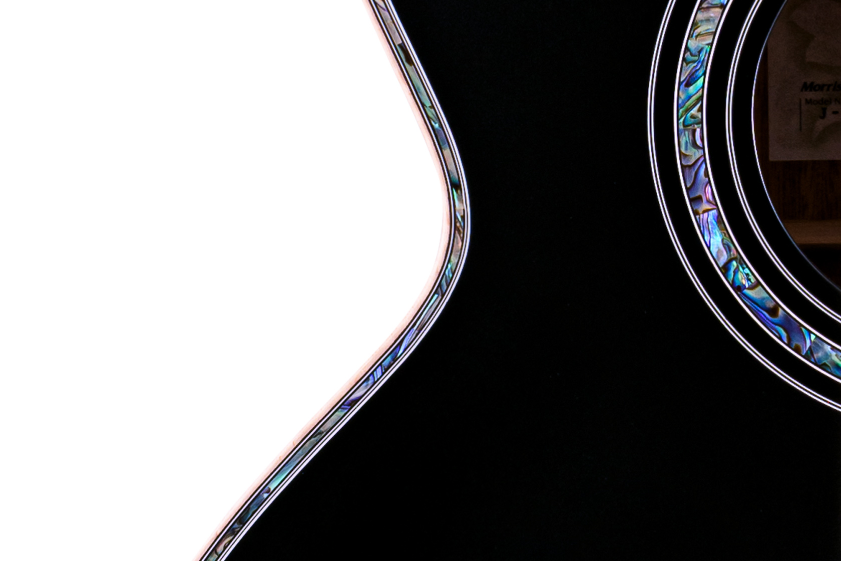 ボディ外周のアバロンとメイプルのバインディングも拘りポイントです。