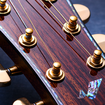 - ヘッドプレート → インディアン・ローズウッド単板(スタッフ選定材)
