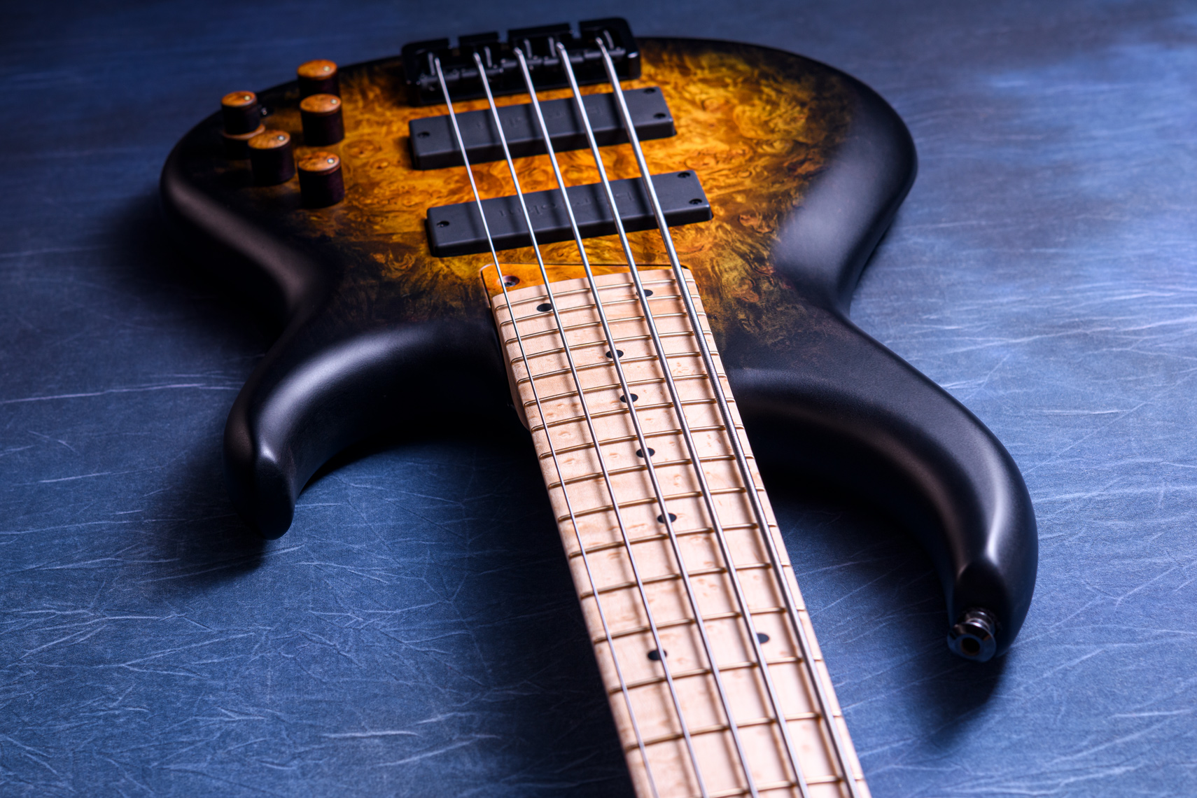 Quilt Maple Top Colored Ocean Blue Fade Dark Horns