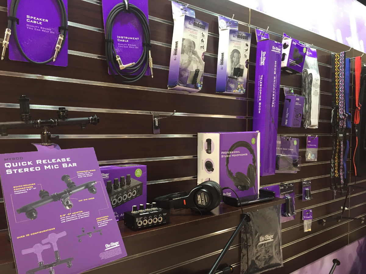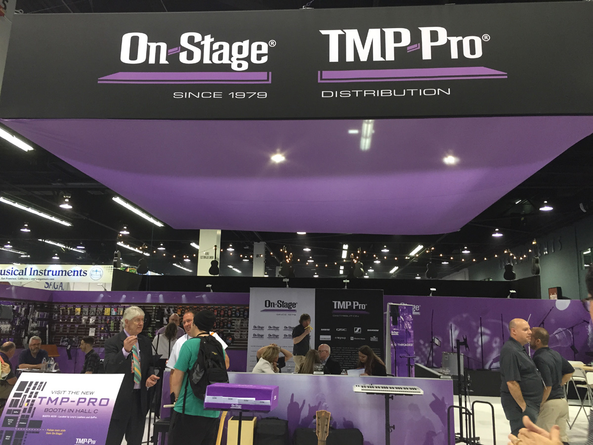 楽器スタンドをはじめ各種楽器関連アクセサリーを発売するOn Stage Stands。ブランドイメージカラーの紫に包まれたブースにはたくさんのアクセサリーがディスプレイされていました。アンプの角度をつけられる簡易スタンドは便利そうですね。入荷予定商品や入荷時期等決定次第随時お知らせいたしますのでお楽しみに!