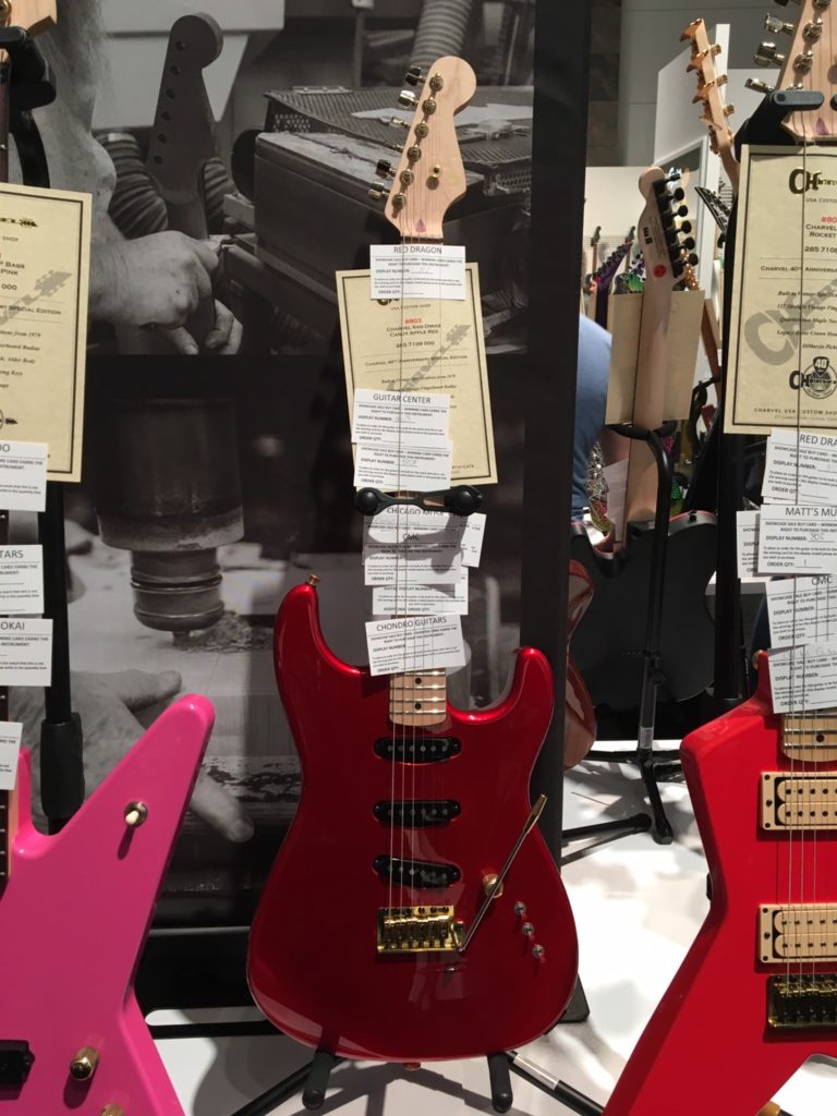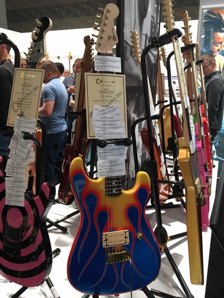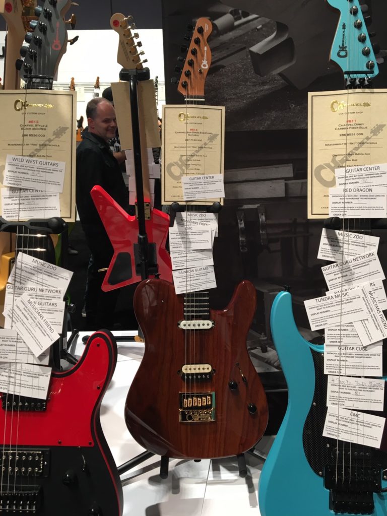 こちらはCharvelのブース。往年のハードロック/ヘヴィメタルなイメージに留まらず、近年は現代的なテクニカル・インストのプレイヤーをはじめ幅広い層に支持されていますね。