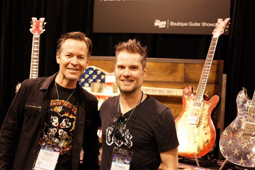 今回のNAMM SHOWでもMcSwainらしいド派手なグラフィックフィニッシュのモデルやメタルトップのモデルが強烈なインパクトを放っていた。