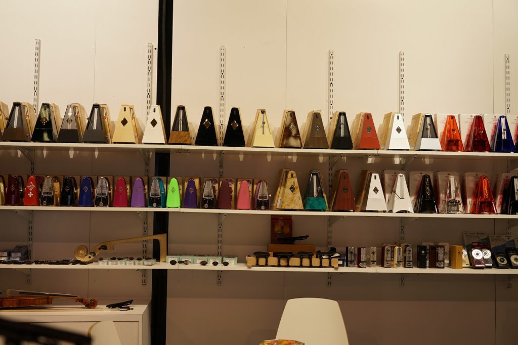 こちらはドイツのブランド「Wittner」。1895年からメトロノームを作ってきた老舗なだけあり、伝統の感じられる風格のあるメトロノームが並ぶ。