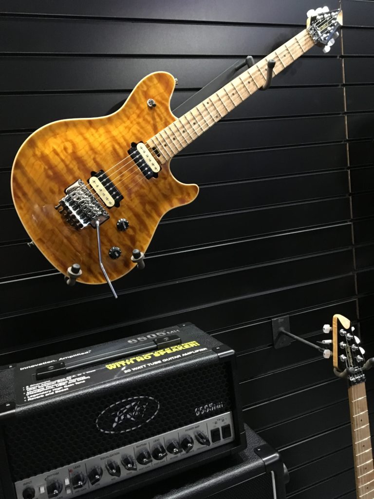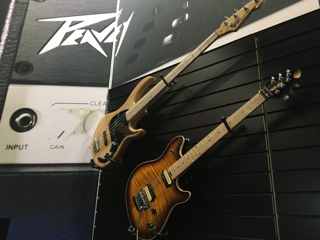 Peaveyブースにはあのモデルに端を発する「HP2」シリーズのエレキギターや「6505」シリーズのアンプが並びます。