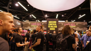 こちらはErnie Ball/Music Manのブース。壁面にはお馴染みのアーニーボール弦がずらり。 もちろん、Music Manブランドのギターやベースも。普及版ブランドSterling by Music Manも合わせ...