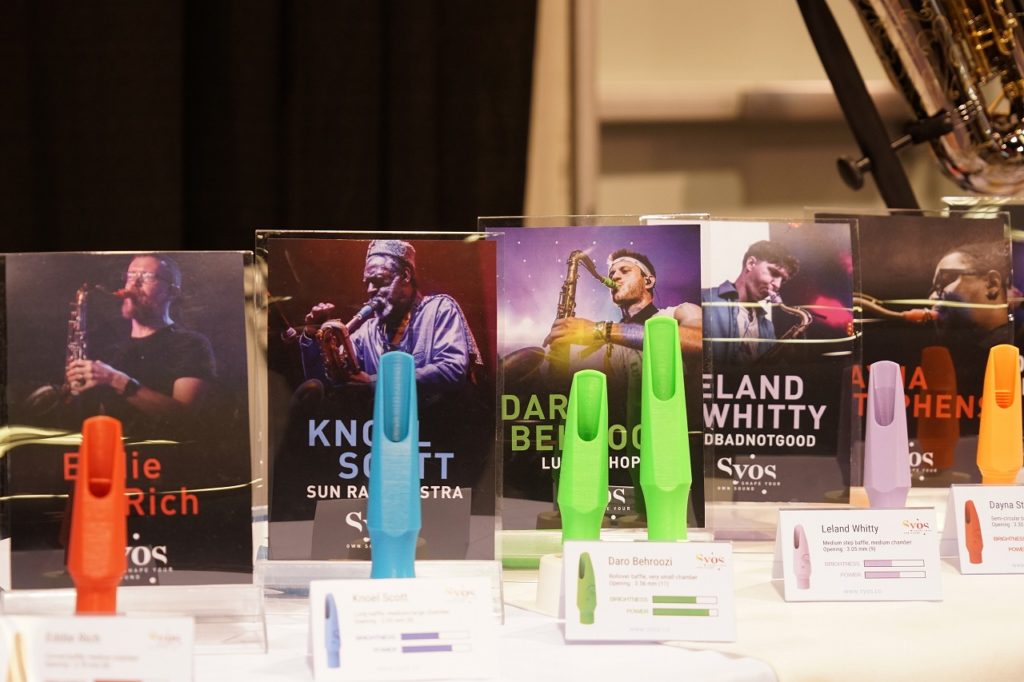こちらはABS樹脂製のSyosマウスピース。様々なアーティストのモデルが並びます。