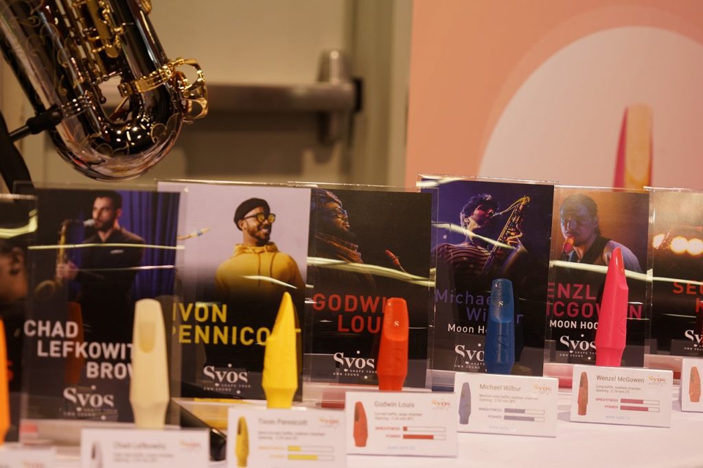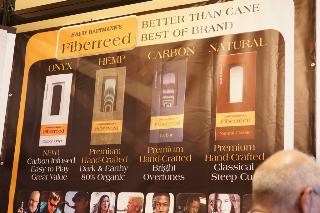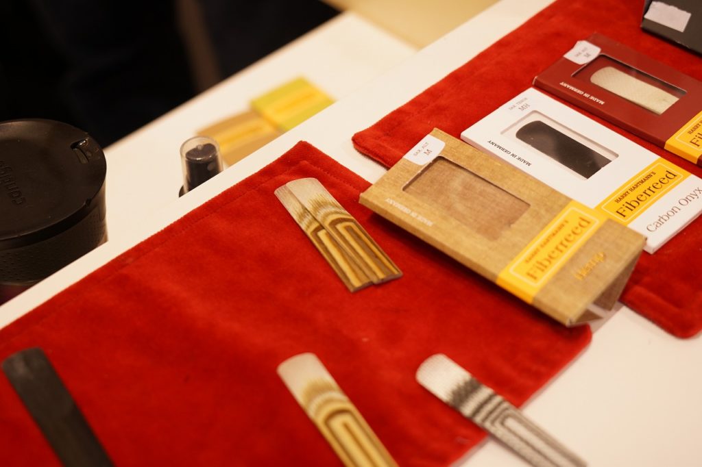 こちらはドイツ生まれのHarry Hartmannリードのブース。特殊ファイバーに麻やカーボンなどの素材を配合した合成リードで、天然素材のリードよりも長持ちし、吹きやすさも魅力だそうです。