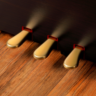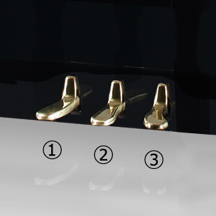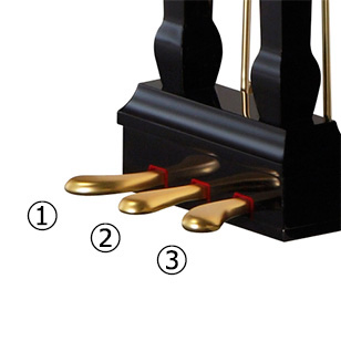 中:ソステヌートペダル…鍵盤を押さえた後に踏むことで、ひとつの音や和音を響かせたまま演奏ができるペダル。ラフマニノフ等の楽曲で使われることがあります。
