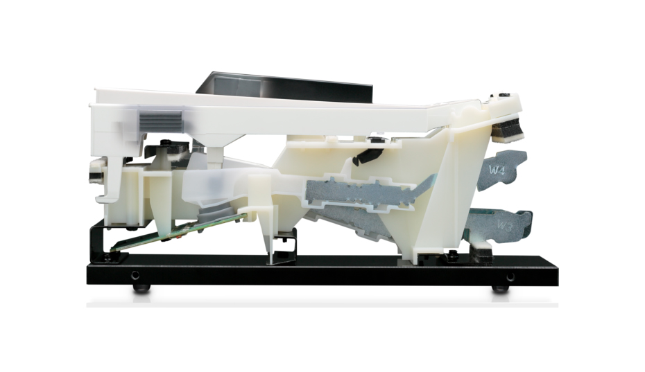 ハイブリッド構造の鍵盤は、木材を使用しながらも経年劣化による歪み等の影響を受けにくく、定期的なメンテナンスがいらない鍵盤 です。