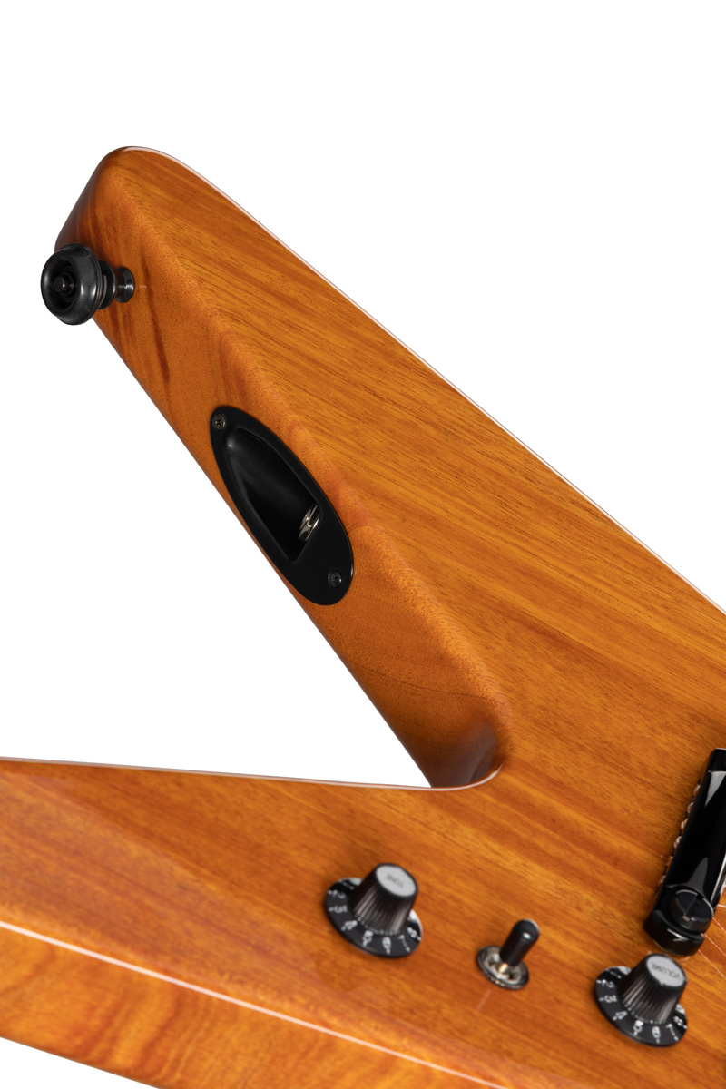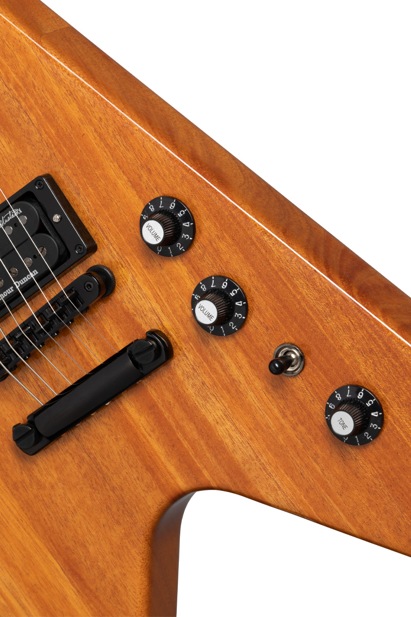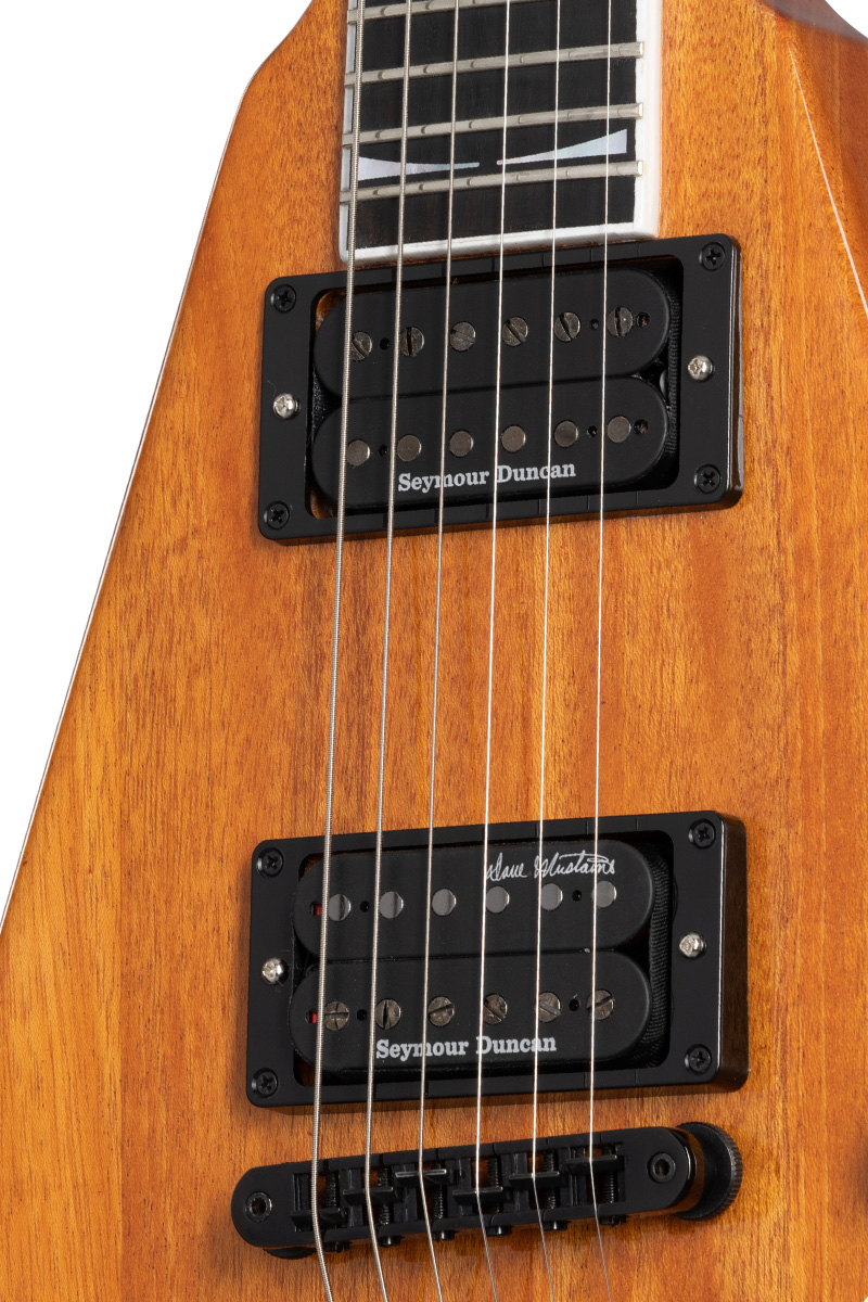 マホガニー・フライングVスタイルのボディには、Tune-O-Matic ブリッジとストップバー・テールピースを使用し、デイブ・ムステインのシグネチャー・ピックアップである Seymour Duncan® Thrash Factorがペアで搭載されています。