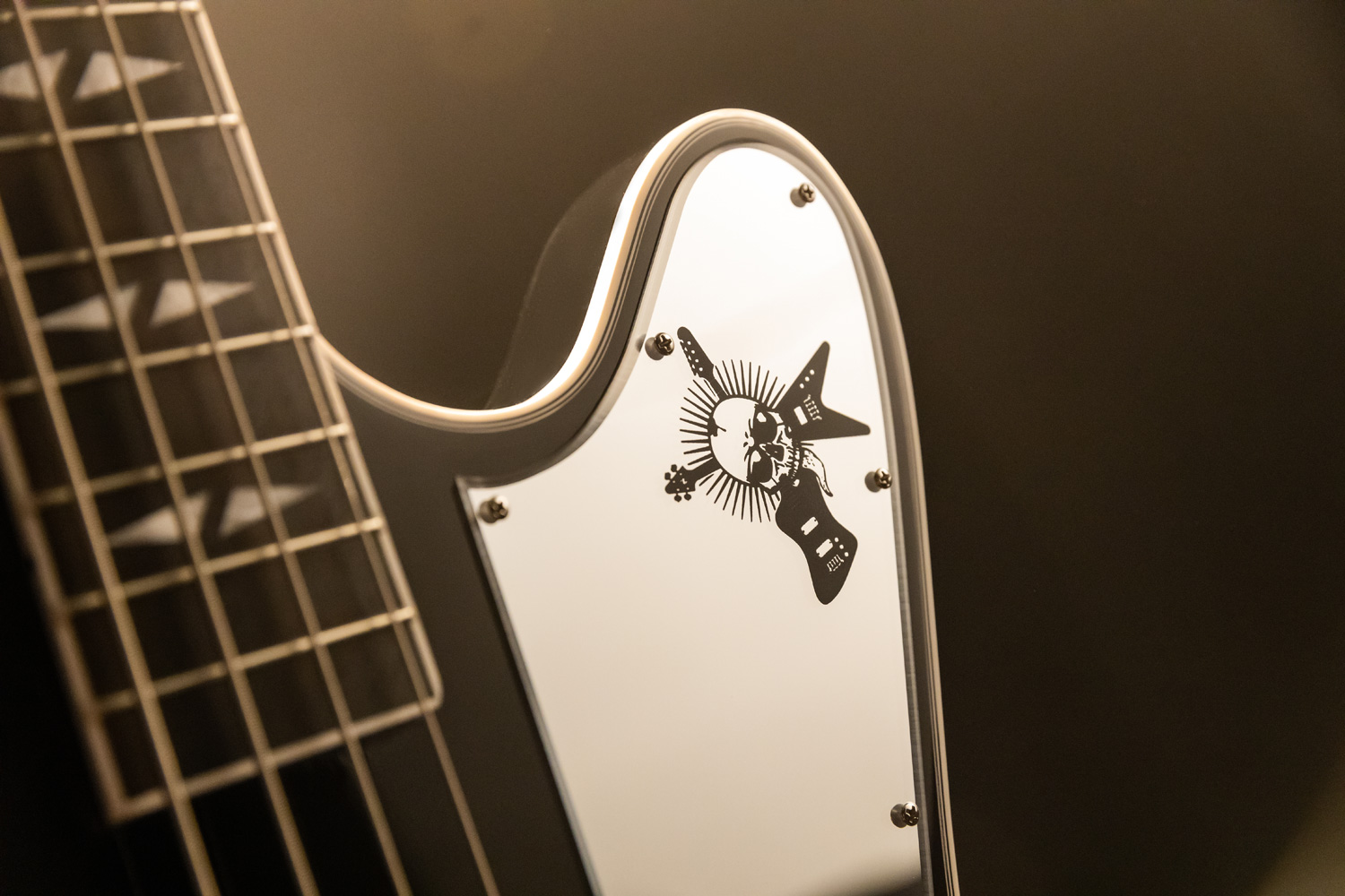 ヘッドストック裏のには”G2”ロゴ、エボニー・ニトロセルロース・ラッカー・フィニッシュにブラック・クローム・ハードウェアを使用、Mirror Plex(鏡面加工)トラス・ロッド・カバー、レーザー刻印されたGene Simmonsロゴ入りのMirror Plexピックガードと、ジーン・シモンズのスタイルがふんだんに盛り込まれた仕様となっています。さらにモダンなハードシェルケースが付属します。