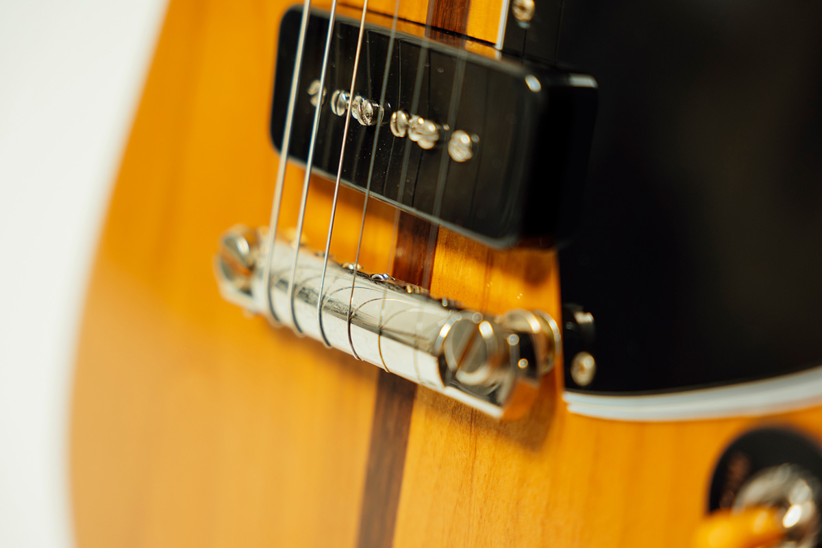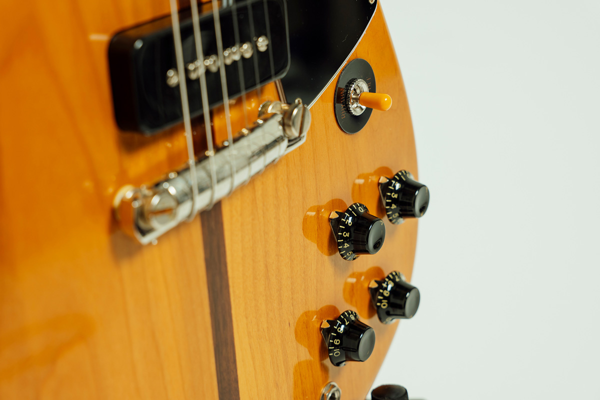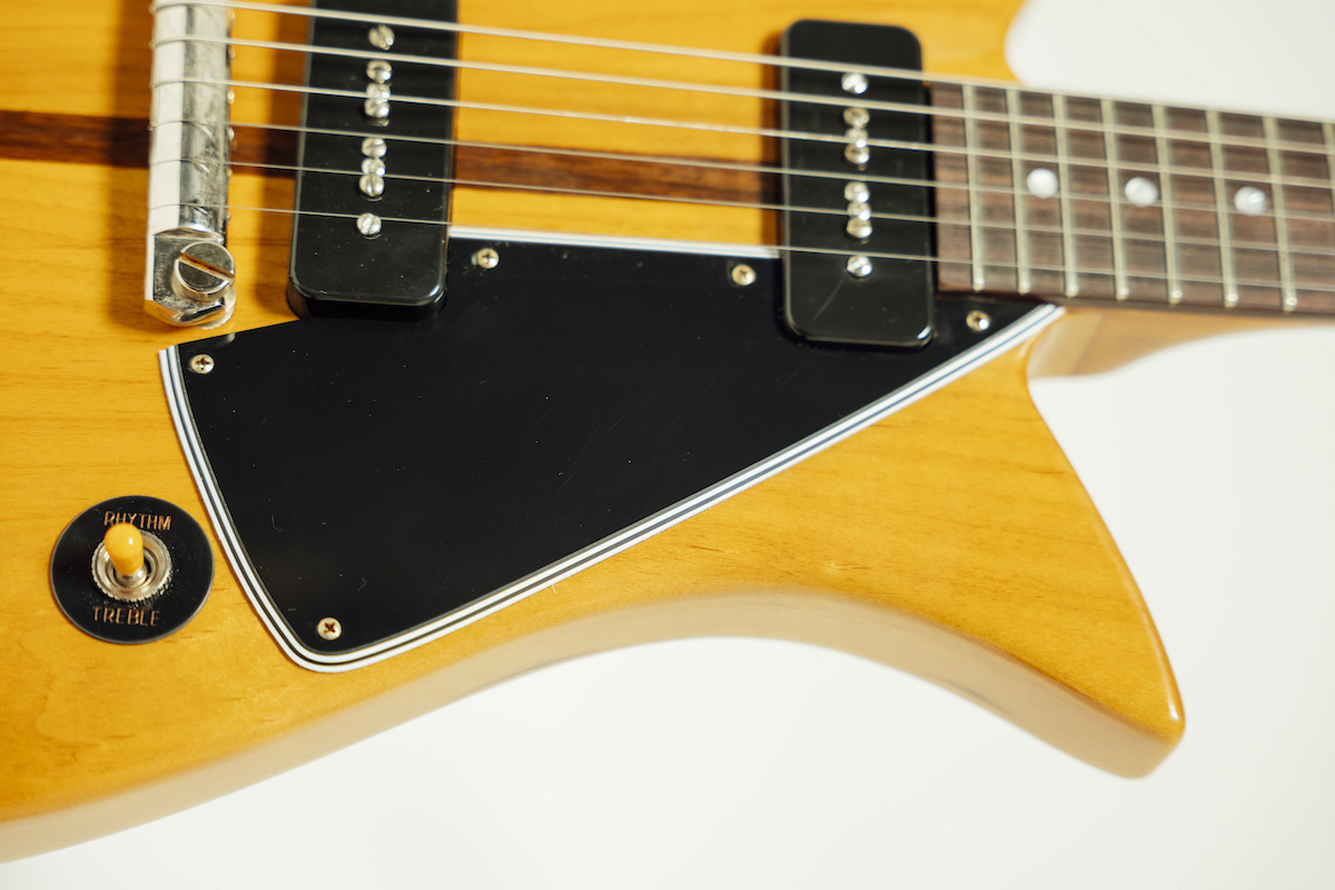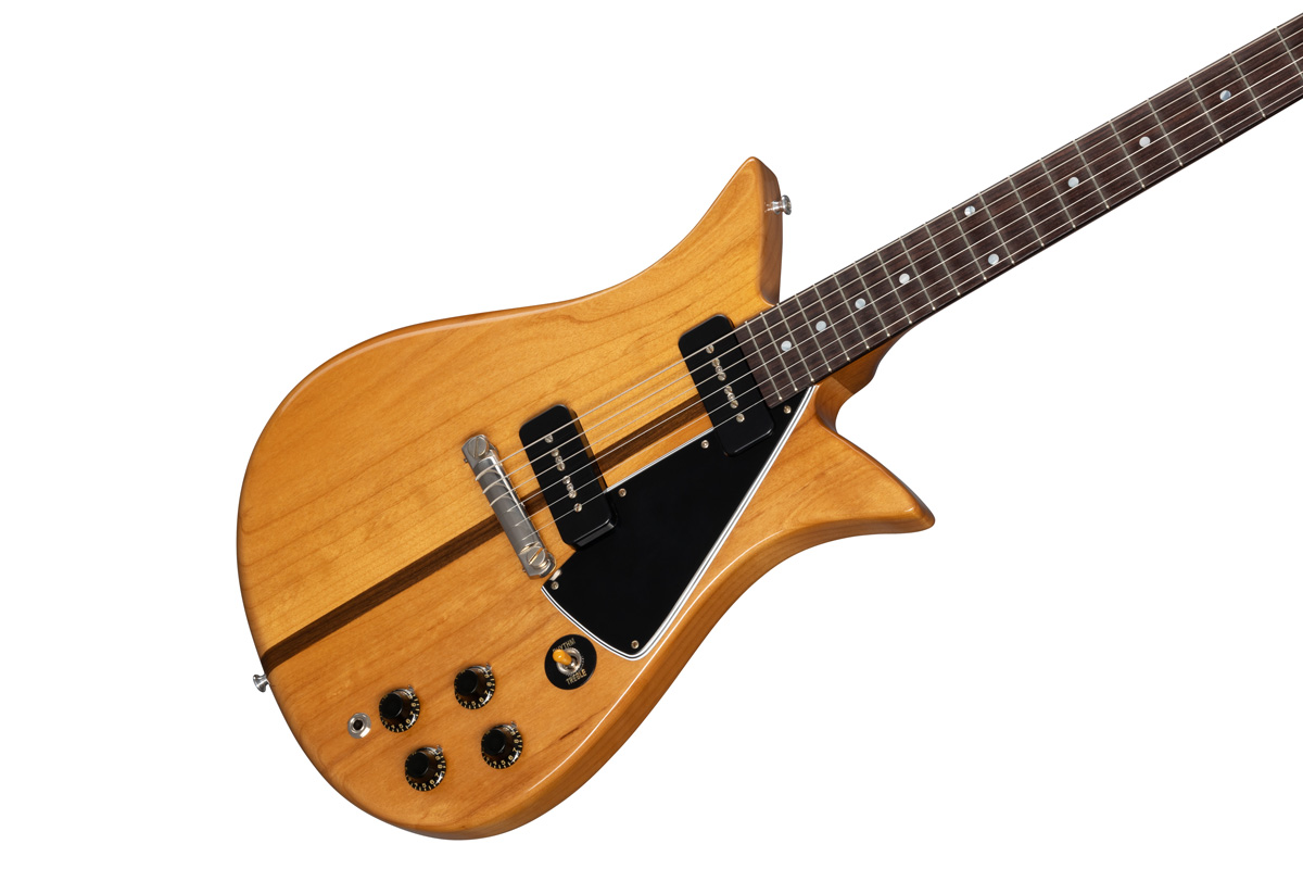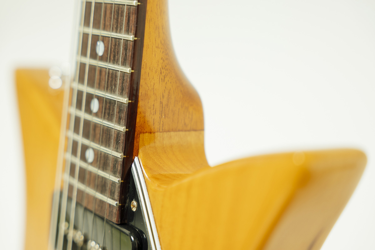 アルダーボディ、エクスプローラー型のヘッドストック、ダブル・カッタウェイ、ウォルナット・センター・ストリップを特徴とし、軽量かつ優れたウェイト・バランスによる良好なプレイアビリティと伝統的なP-90ピックアップによる汎用性の高いトーンを備えています。