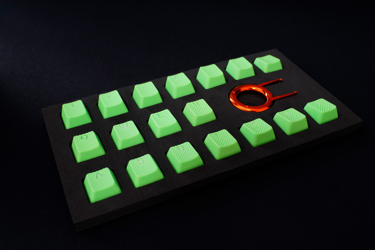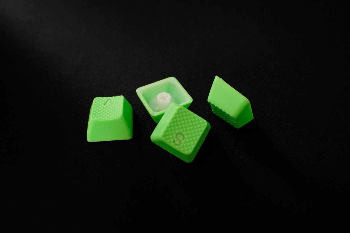 - ゲームプレイとタイピング感を向上させる、質感の高いラバーキーキャップ