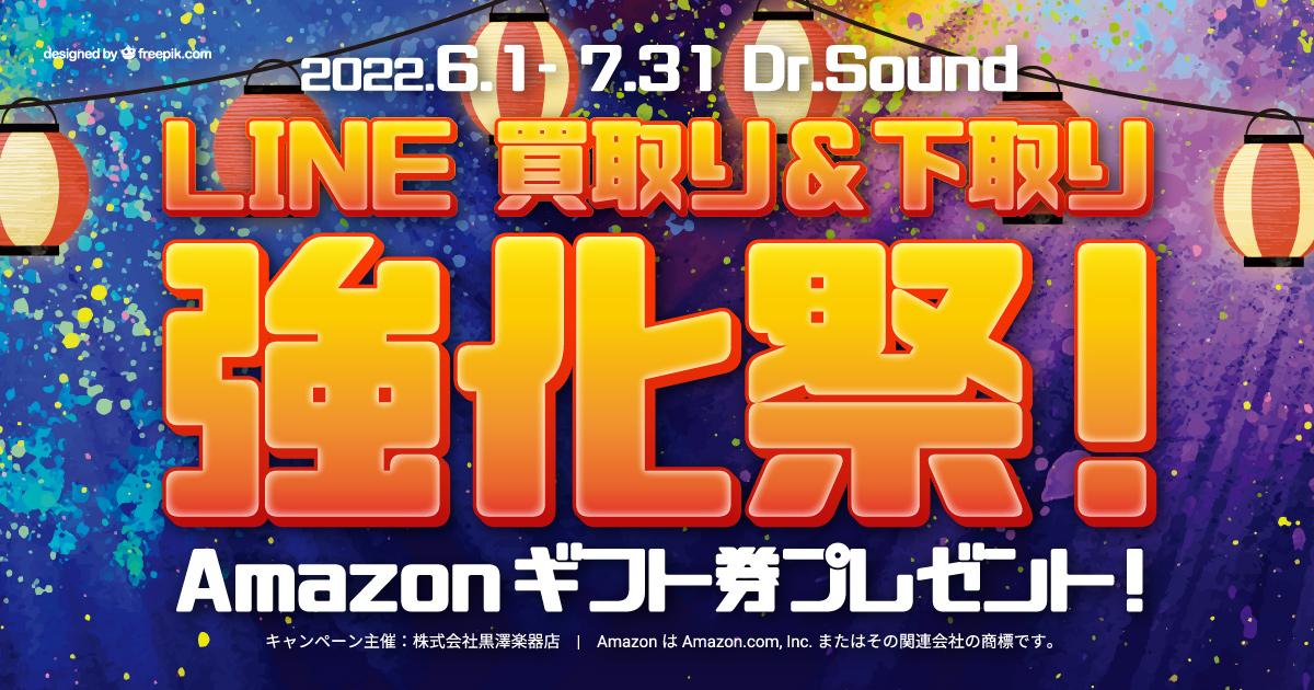 2022年6月1日(水)~7月30日(日)の間、Dr.Sound では LINE 経由での買取り&下取りを強化中!期間中にLINE経由で買取り&下取りご成約で、Amazonギフト券プレゼント!