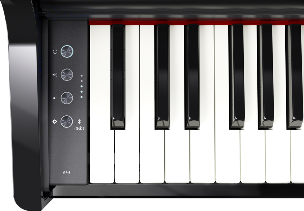 GP-3 には、新サンプリングの「ピアノ・リアリティ・スタンダード音源」と、新センサーを搭載した「ピアノ・リアリティ・スタンダード鍵盤」を搭載。グランドピアノの特性をさらに追求し、自然な音色変化や減衰音が特長の音と、どんな繊細なタッチも忠実に反映する高速化センサーと、グランドピアノ同様のエスケープメント機構を備えたハンマー・アクション鍵盤を採用。音・タッチの両方で豊かな演奏表現を可能にすることで、弾き手の気持ちに応えます。