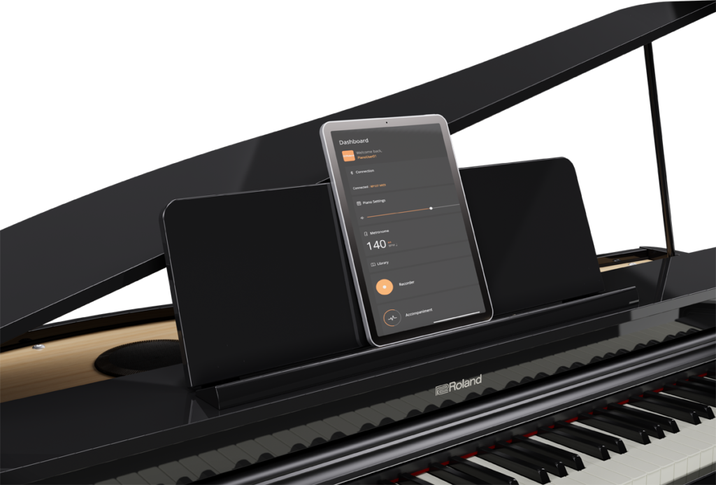 - Bluetooth® MIDI/ オーディオ機能を搭載し、スマートフォン/タブレットとワイヤレス接続可能。オリジナル無料アプリ「Roland Piano App」で広がるデジタルならではの楽しさ