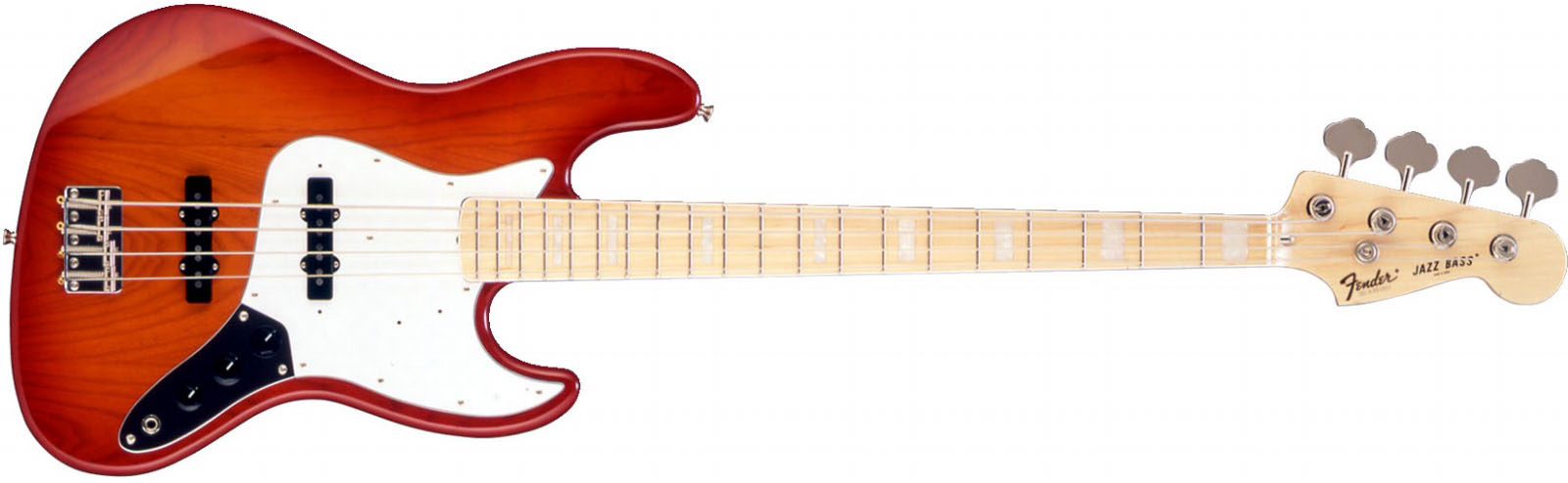 70年代に多く採用されたアッシュ材をボディに採用し、より引き締まったサウンドにワイドレンジで幅広いジャンルに対応するオリジナル・ピックアップを搭載させた'75ジャズベース。