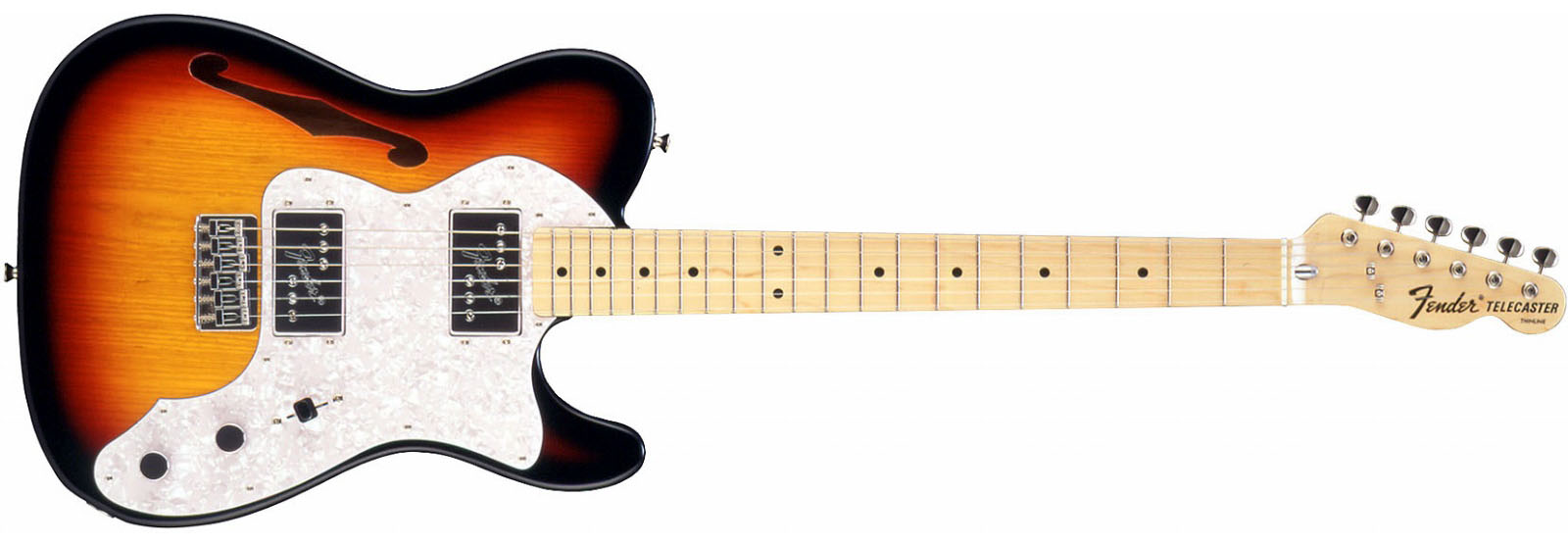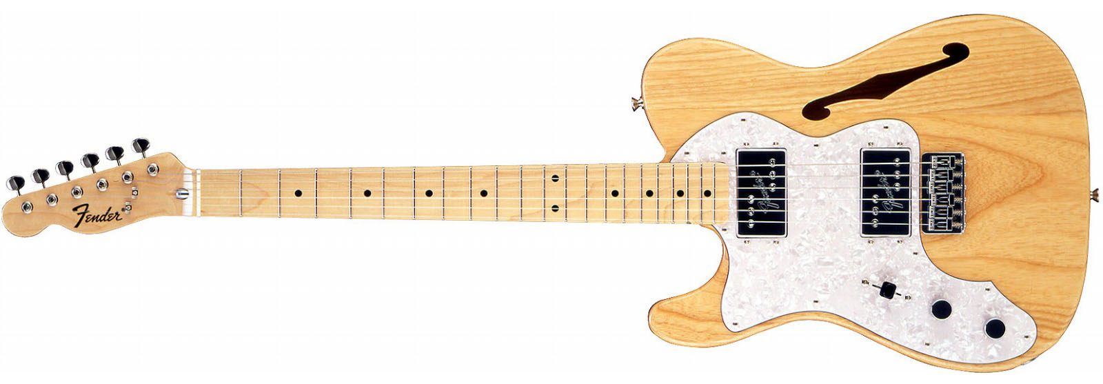 特徴的なFホールデザインを持ったチェンバードボディに、フェンダー・オリジナル・ラージハムバッカーをマウントした'72テレキャスター・シンライン。
