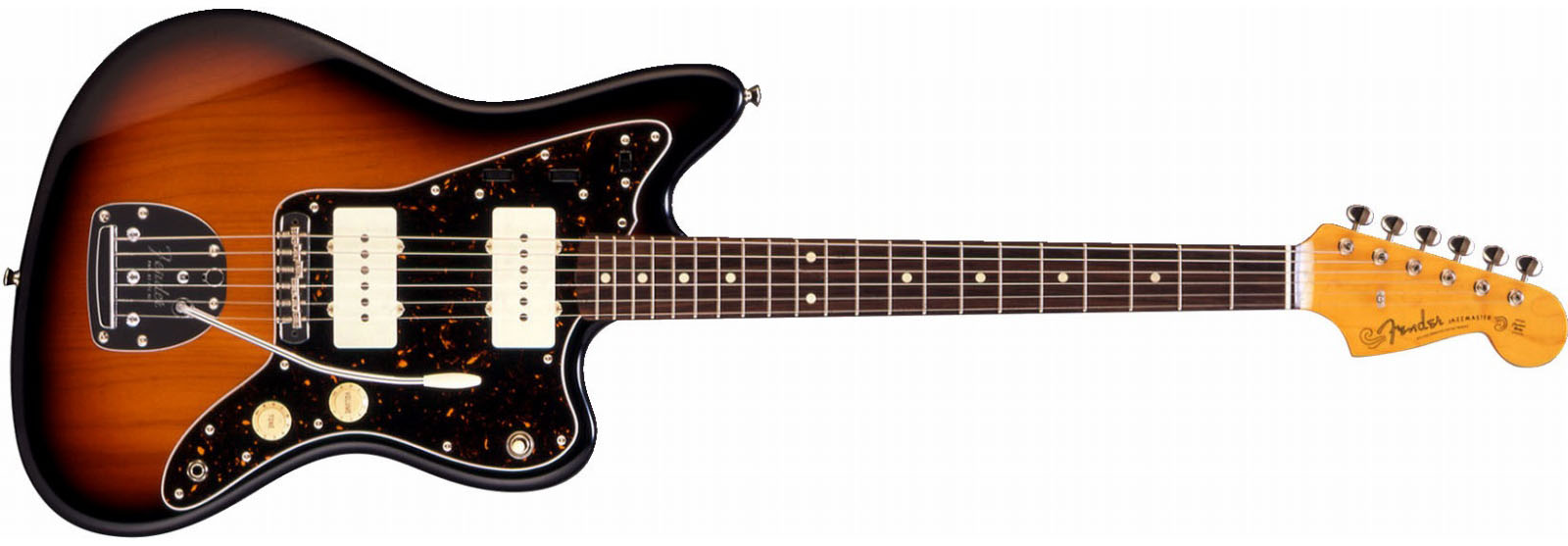 大きく印象的なルックスのオリジナル・アルニコ・シングルコイルピックアップの太い音色が特徴のジャズマスター。