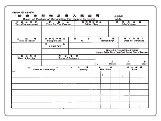 ☆Show your passport to store staff when you make payment.*From October 1st 2021, the document of "Duty-Free Record of Purchase" has been abolished. We use electronic record of purchases data and report it to the National Tax Agency in Japan. International customers do not have to fill in any documents.