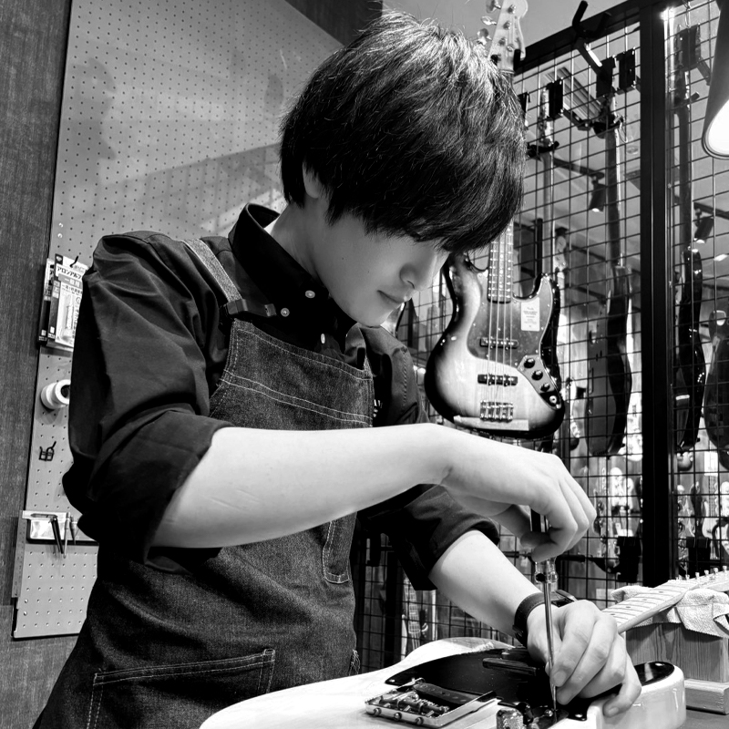 中学校からエレキギターを始め、音楽専門学校でギタークラフト科を専攻。卒業後は楽器店にて販売・リペア業務に携わり、経験を積んだ後、クロサワ楽器にリペアスタッフとして入社。