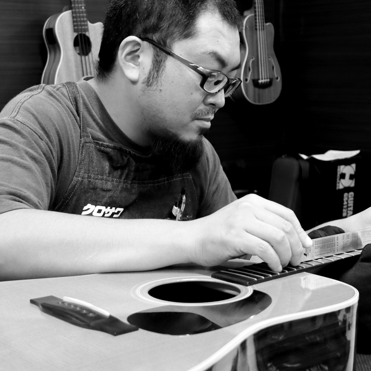 工業高校卒業後、自動車関連工場にて勤務。バンド活動を優先させるためフリーターに転身。その後、結婚を境に大手リユースショップに入社。オーディオ機器と楽器部門を担当し、楽器本体からアンプ、エフェクター、PA 機器を取り扱う。買取した楽器全ての検品、メンテナンス、修理を行う。その後、楽器商社で経験を積んだのちにクロサワ楽器に入社、名古屋店にて勤務。販売員としての実績も重ねてリペアスタッフに。
