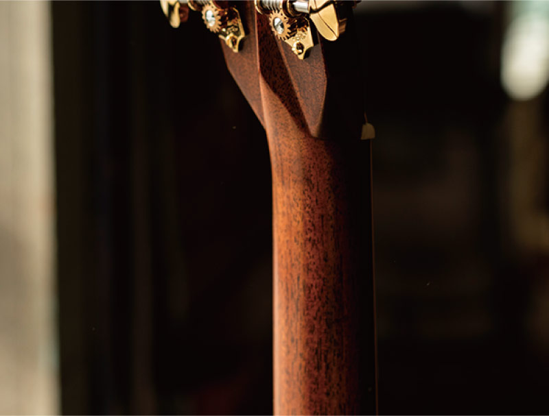 TOP材にはオーセンティックシリーズではお馴染みの、材の細胞を1930年代まで戻したヴィンテージ・トーン・システム「VTS」を施したシトカスプルース、サイド&バック材にはインディアンローズウッドを使用。スキャロップド加工を施しており、豊かな広がりを感じられます。