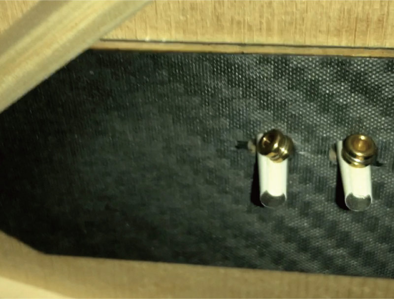 さらに、赤いドットが印象的なLiquidmetalR Red Dotピンを新たに採用。ゴールドのオープン・ギア・タイプのウェーバリーペグ、ゴールド・フレット、European Flamed Mapleによるウッドバインディングを採用し、筆記体パール・インレイ・ヘッドプレート・ロゴのグロスヘッド仕様、重量を増やさず体積を増やした新しい複合炭素繊維ブリッジプレートを搭載。